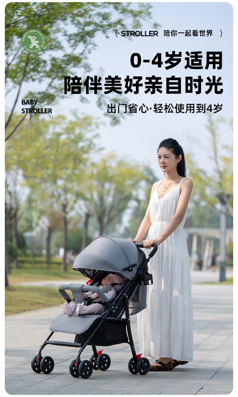 婴儿推车轻便折叠可坐可躺儿童宝宝小孩四轮推车一键收车