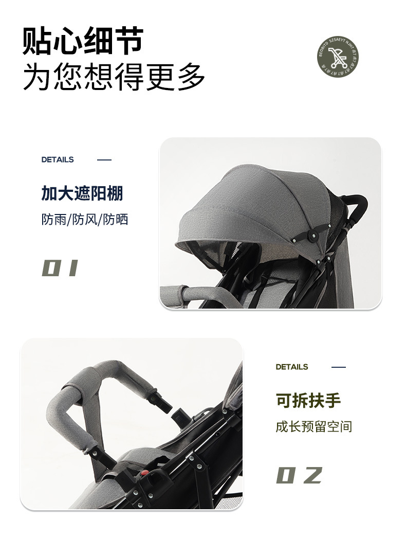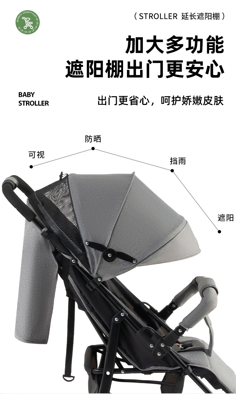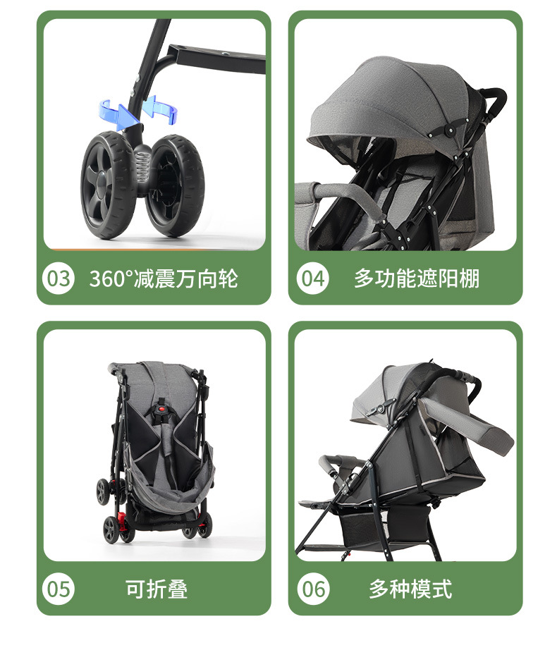 - M005-单向推车-灰色-豪华款-可坐可躺(一键折叠)