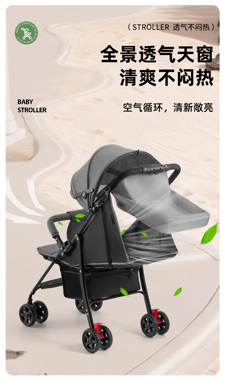 - M005-单向推车-卡其-旗舰款-可坐可躺(一键折叠)