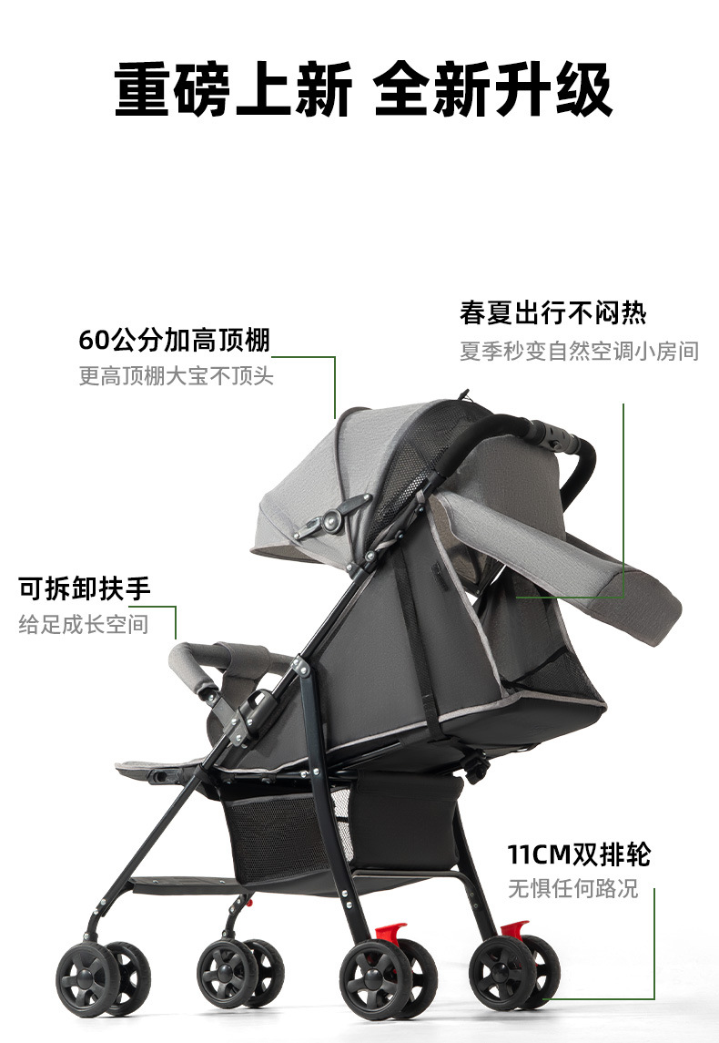 - M005-单向推车-灰色-旗舰款-可坐可躺(一键折叠)