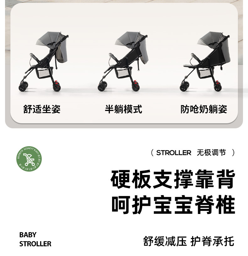 - M005-单向推车-卡其-标配款-可坐可躺(一键折叠)
