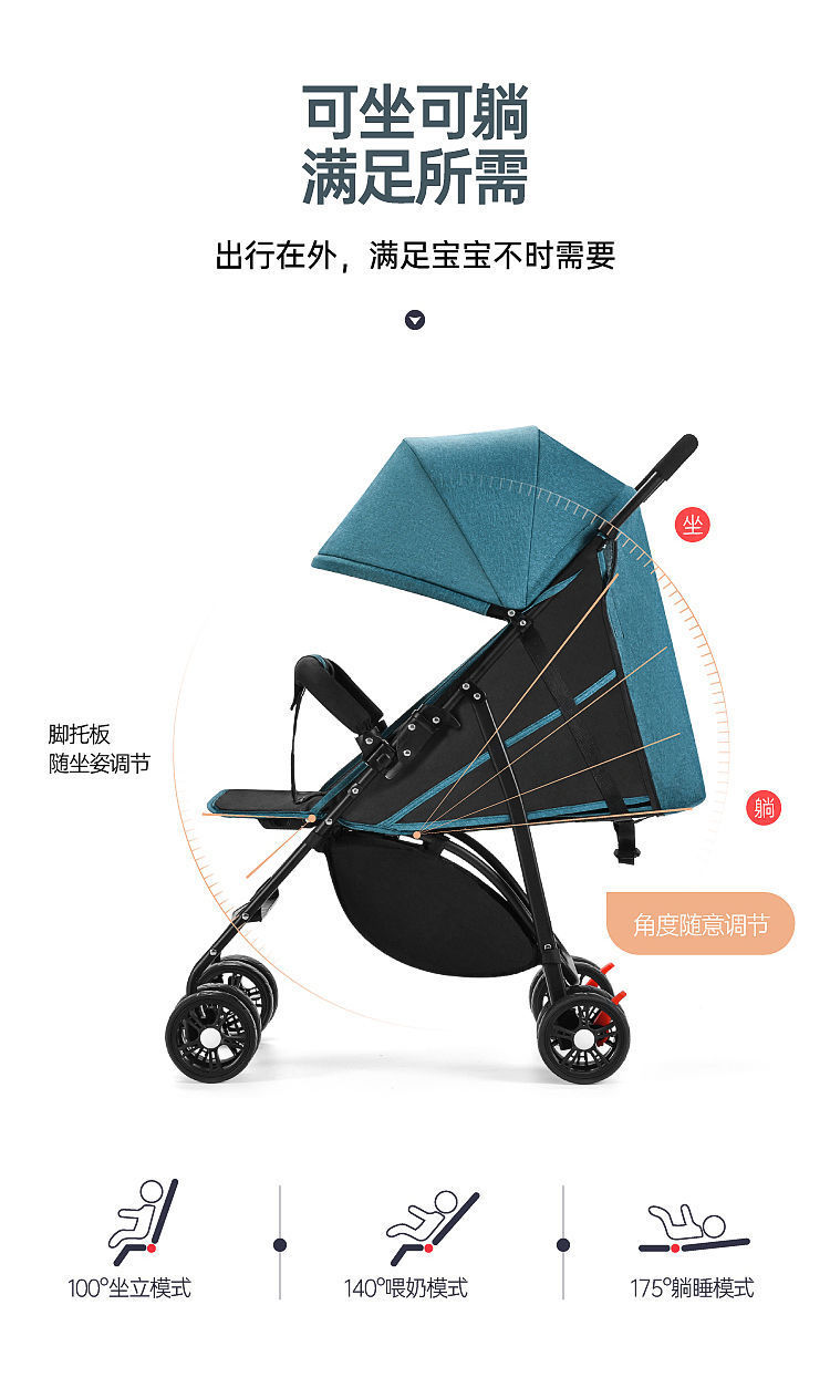 婴儿手推车可坐可躺轻便折叠减震便携手推车儿童宝宝简易伞车夏款