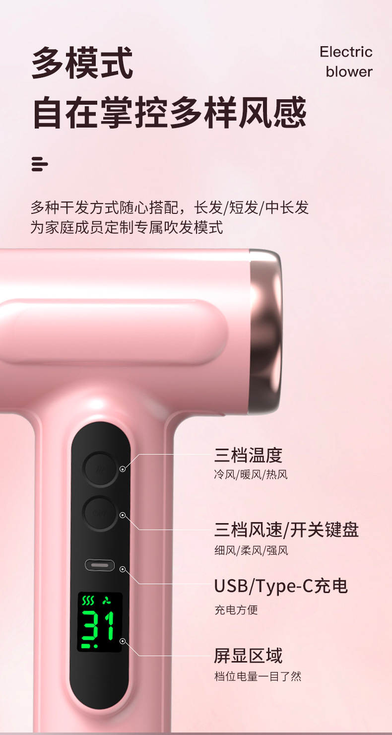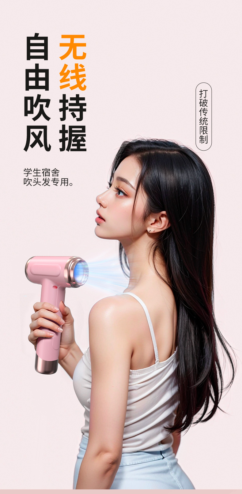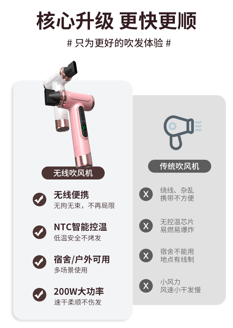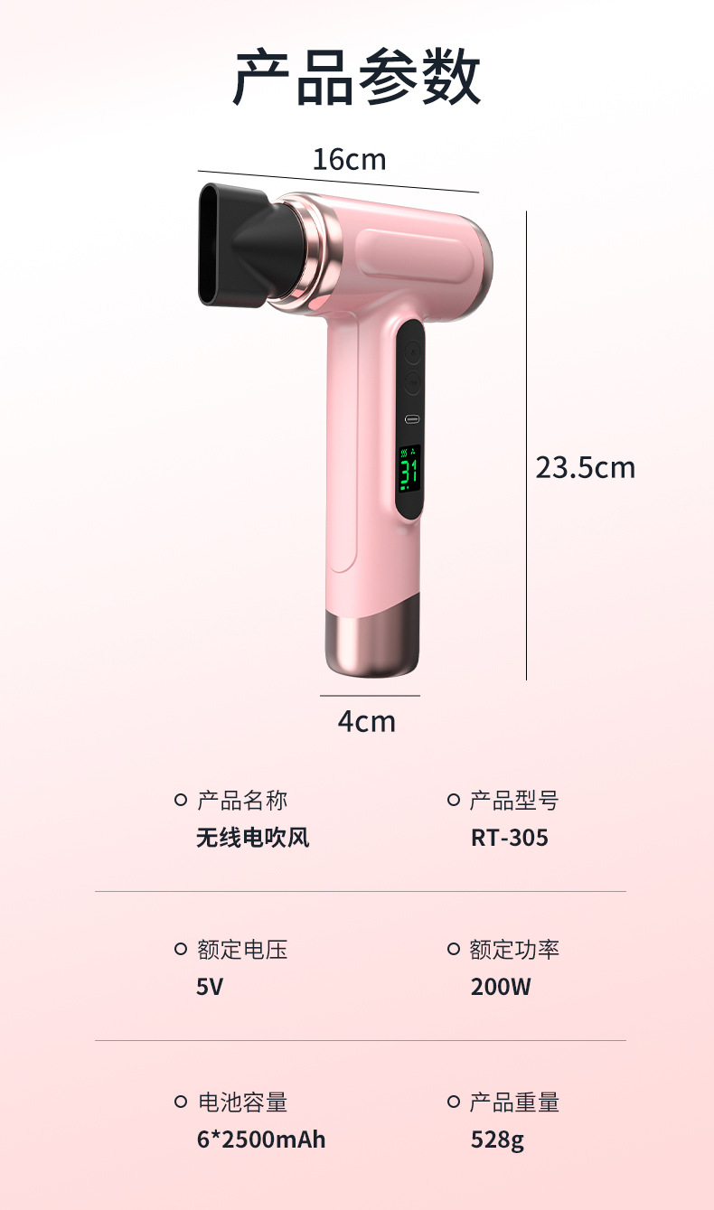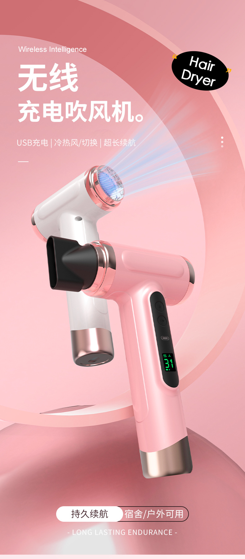 无线吹风机冷热吹风机干湿两用蓝光无线速干大容量充电款便携