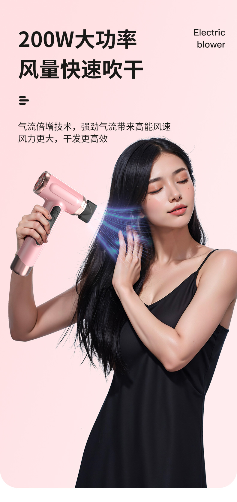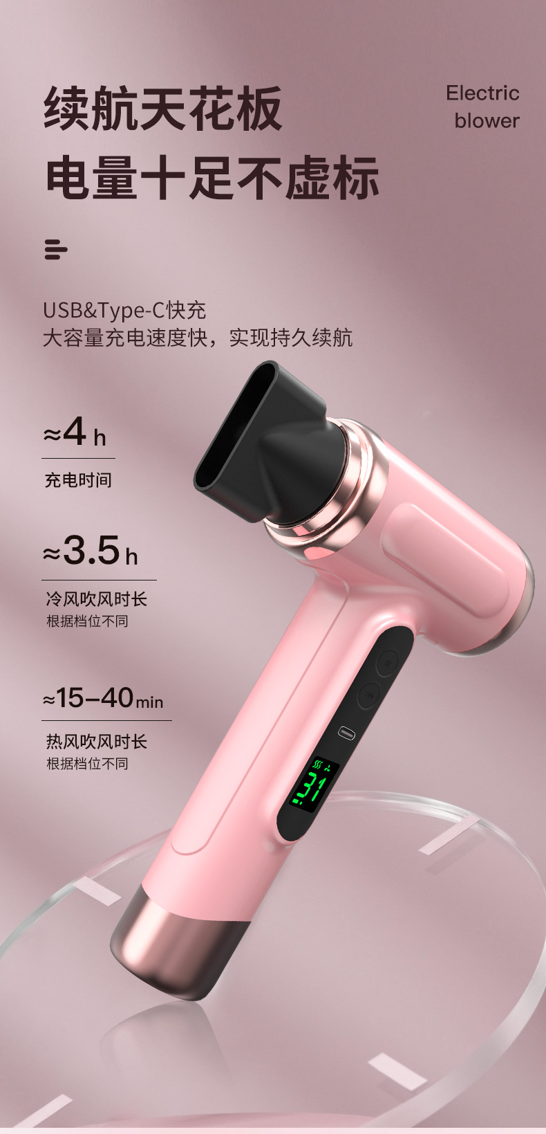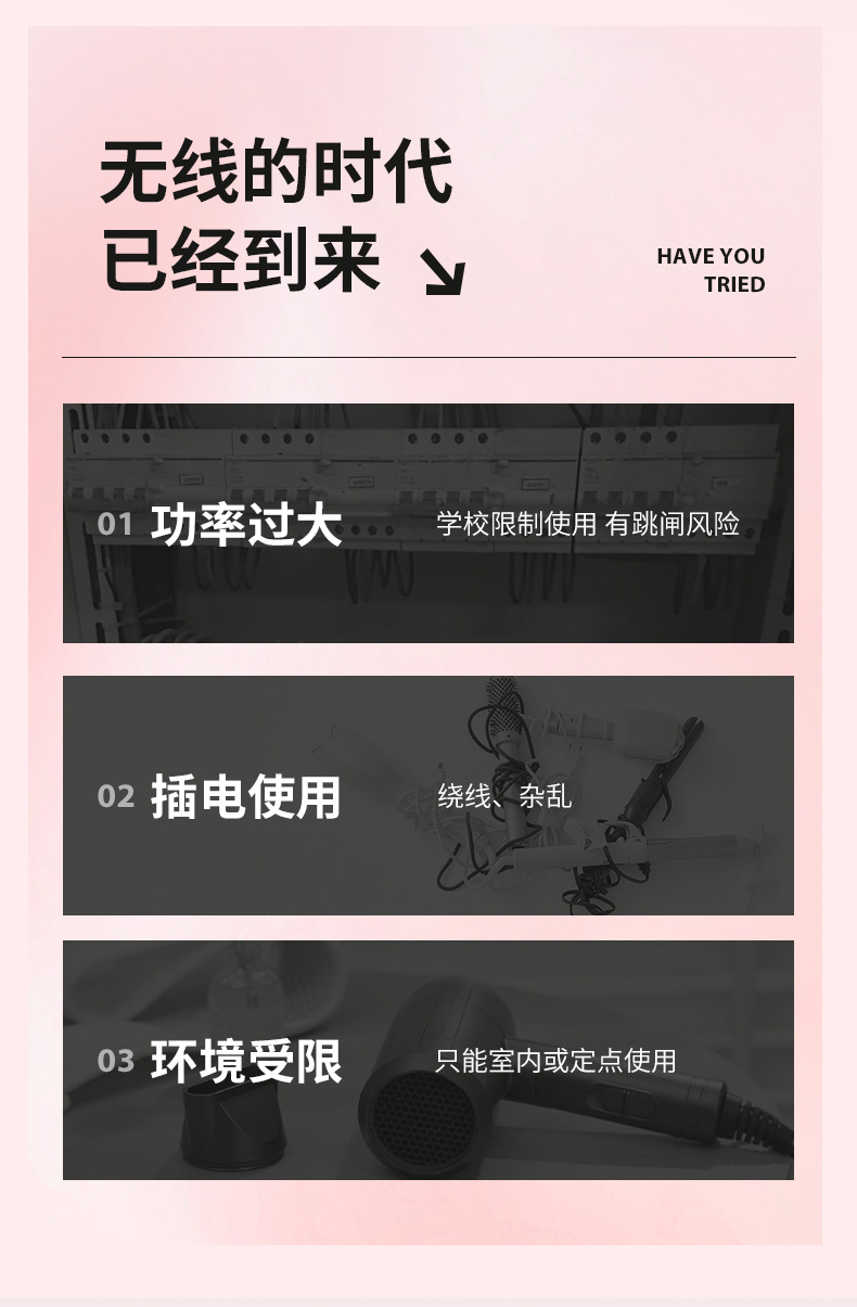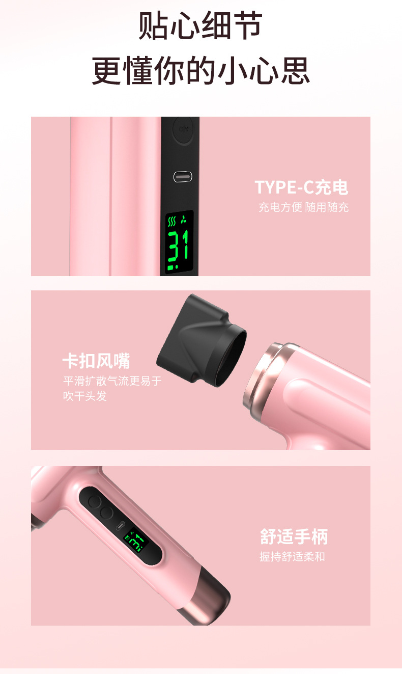 无线吹风机冷热吹风机干湿两用蓝光无线速干大容量充电款便携