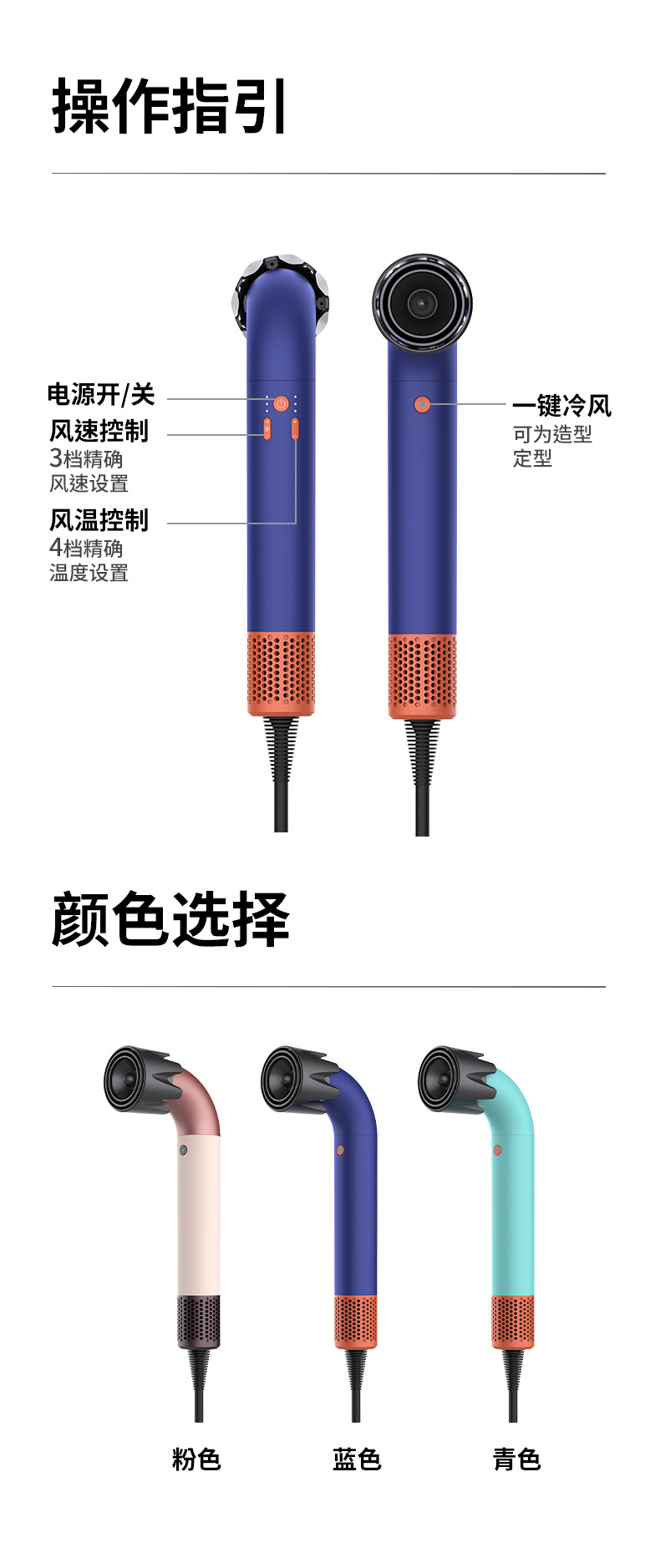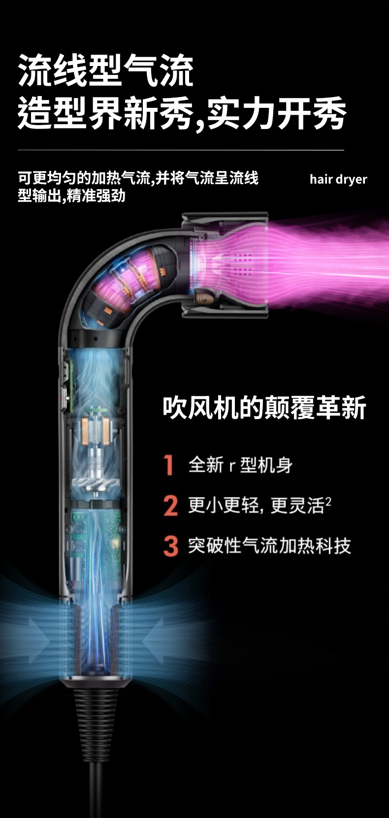 2025新款爆款弯管HD18吹风机高速无叶负离子家用