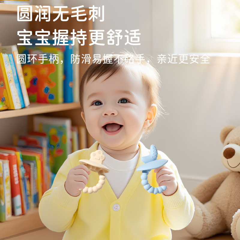 婴儿牙胶宝宝硅胶磨牙棒出牙期可啃咬玩具儿童手环咬胶安抚防吃手