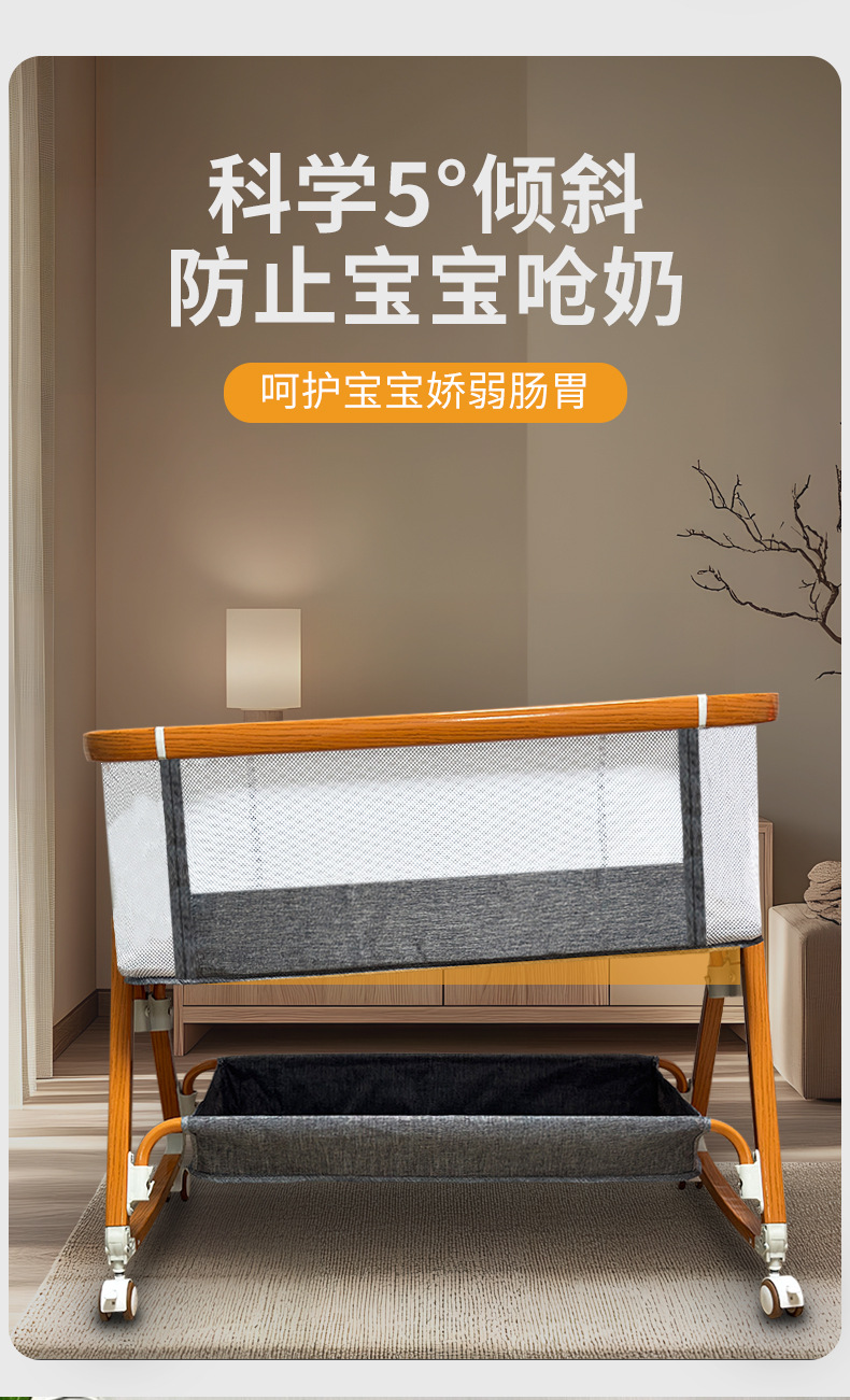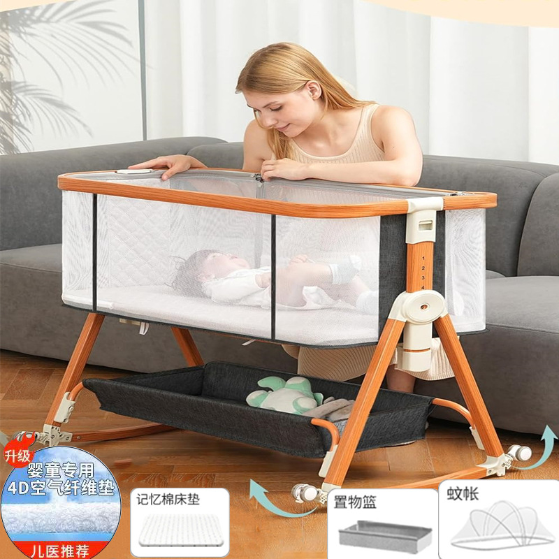 宝宝小床婴儿摇摇床可调多功能拼接大床新生儿移动摇篮床婴儿床