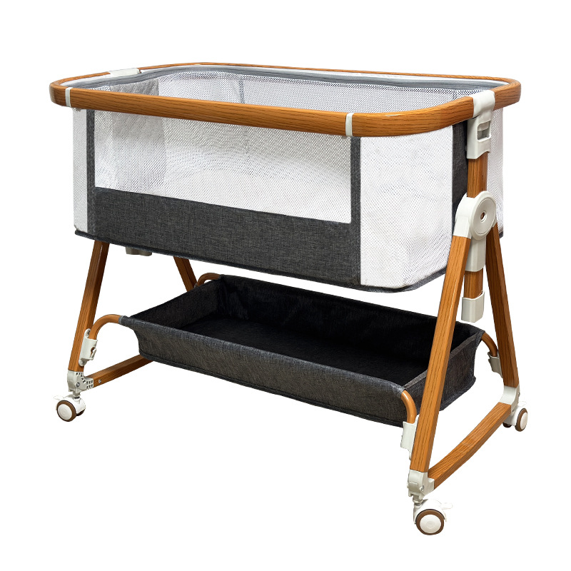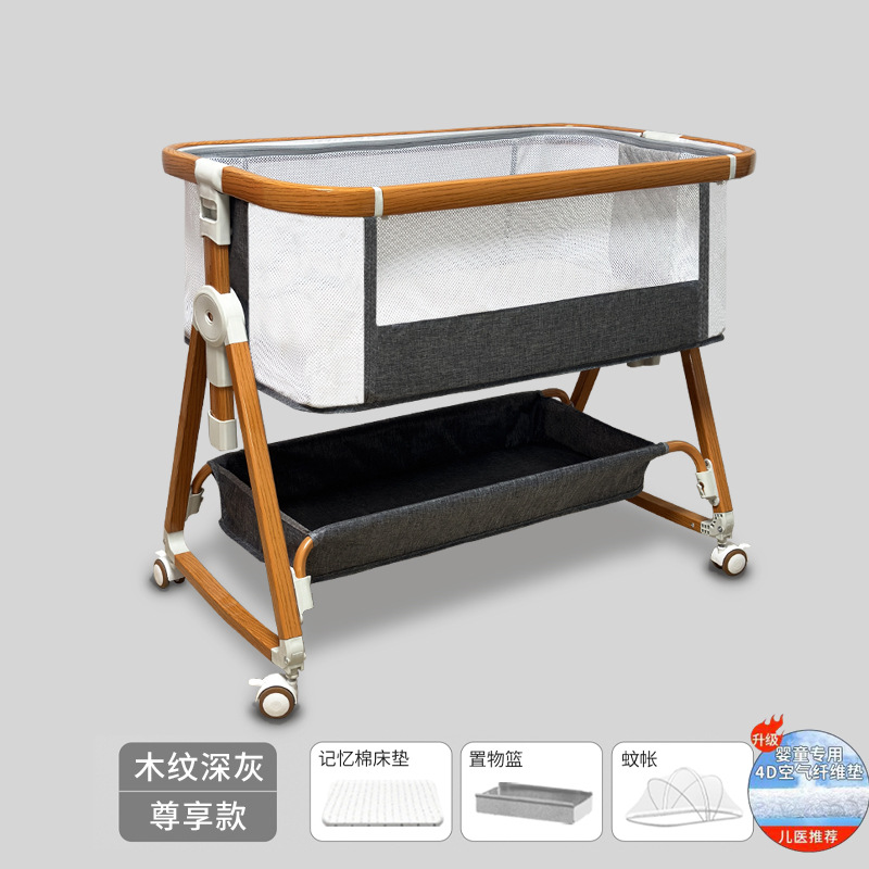 - 铝合金浅木纹深灰+4D高科技床垫+储物篮+蚊帐