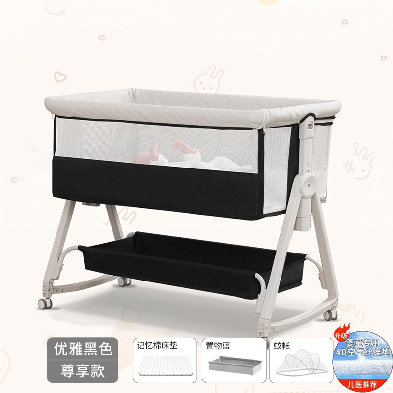 - 高碳钢黑+4D高科技床垫+储物篮+蚊帐