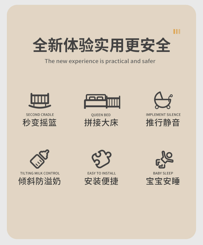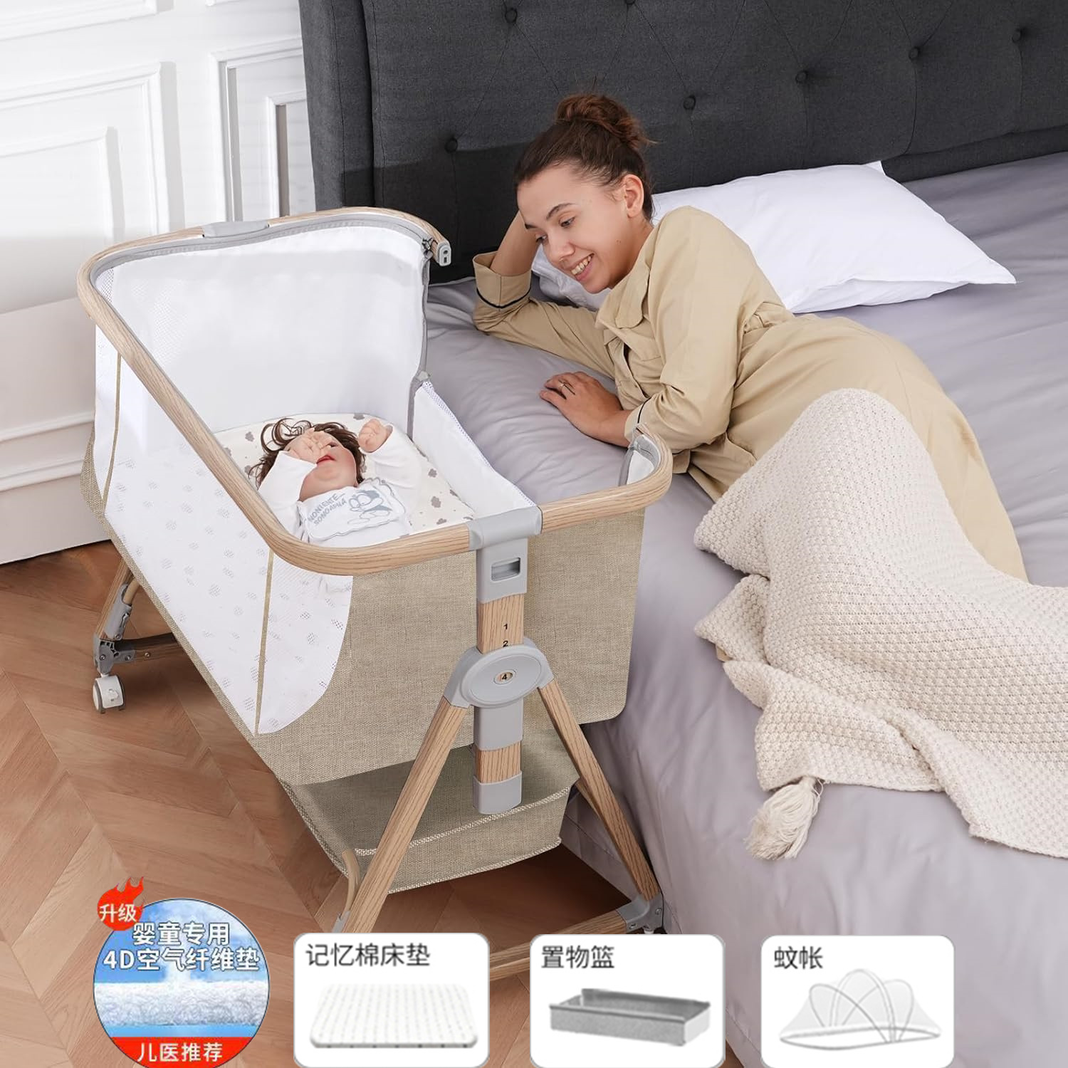 - 铝合金浅木纹卡其+4D高科技床垫+储物篮