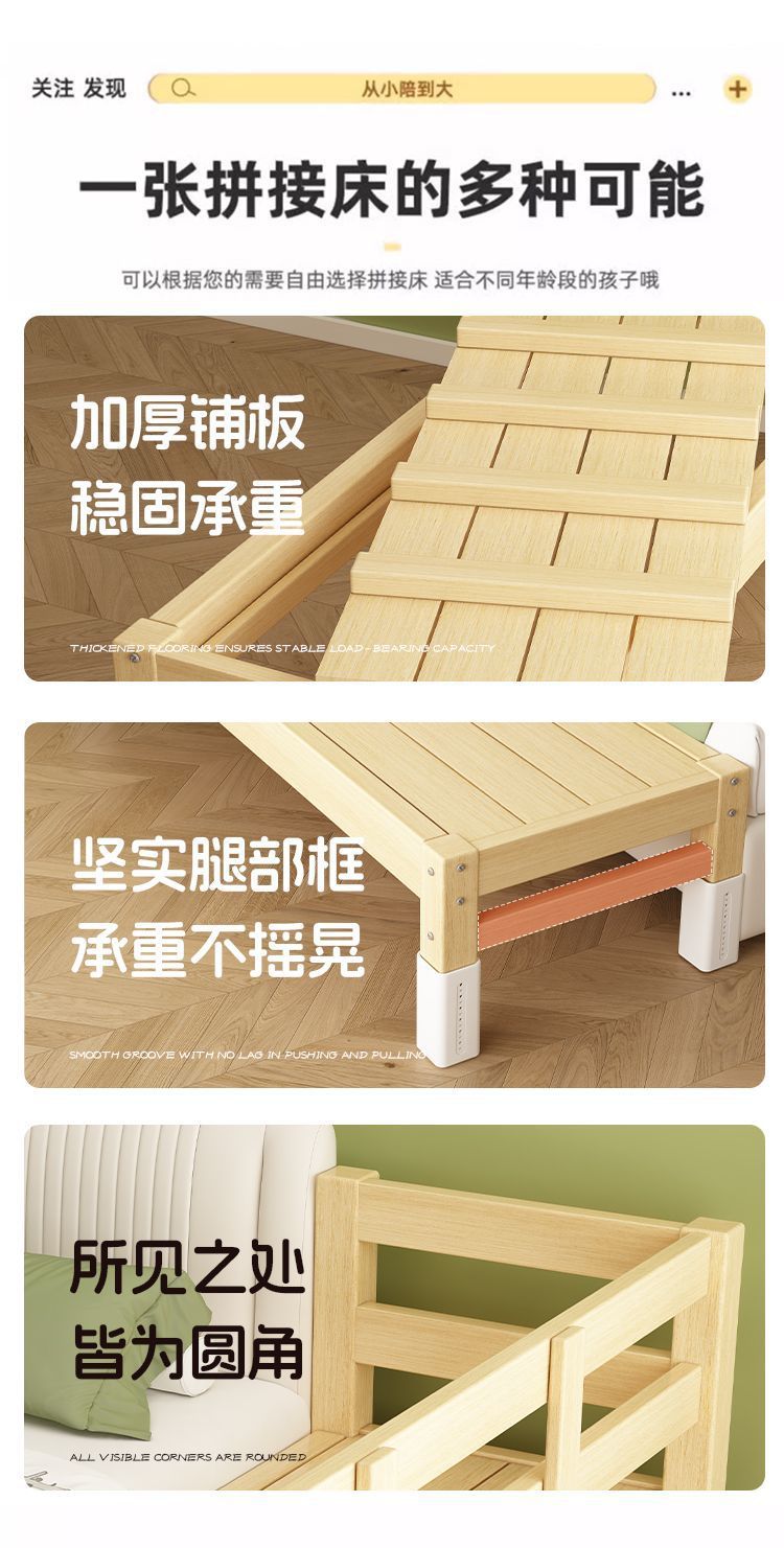 儿童拼接床加宽床边扩大宝宝平接床大人可睡可调节实木婴儿床一件