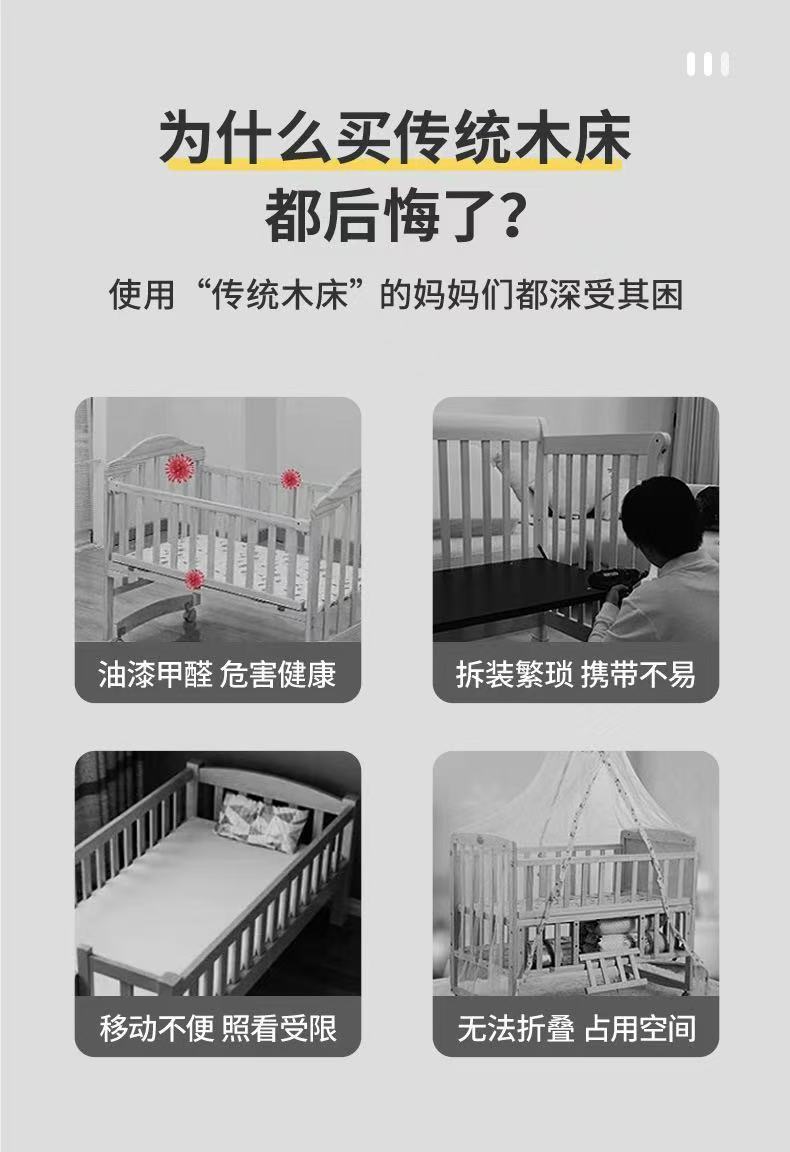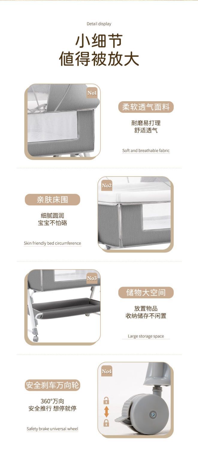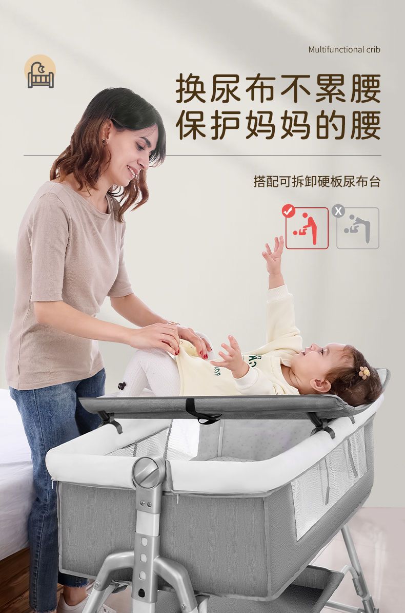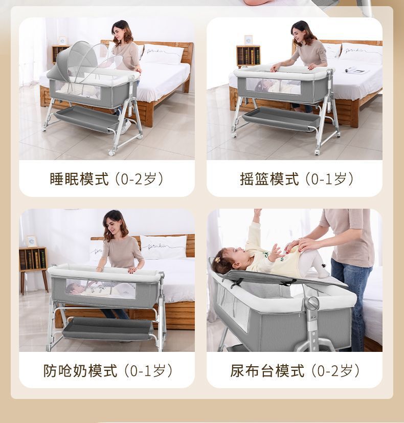 婴儿床可移动摇篮床便携式二合一可折叠多功能bb床新生儿拼接大床