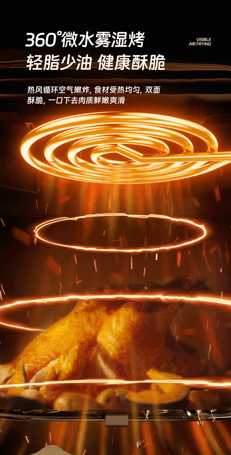 智能空气炸锅家用新款多功能大容量免翻面不粘可视电炸锅立体加热