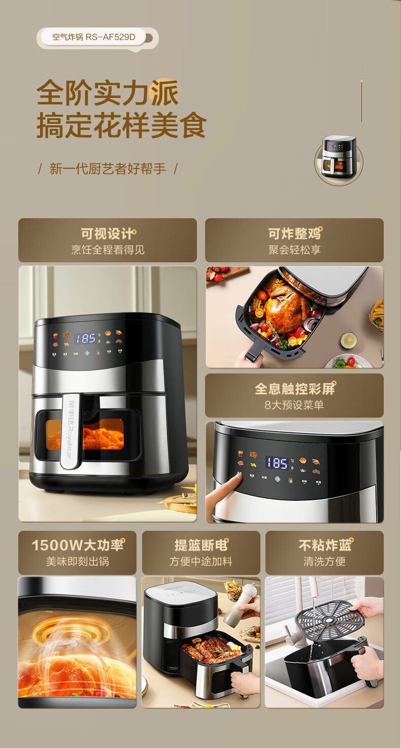 空气炸锅大容量烤箱一体机炸蒸烤多功能锅金属内腔可视