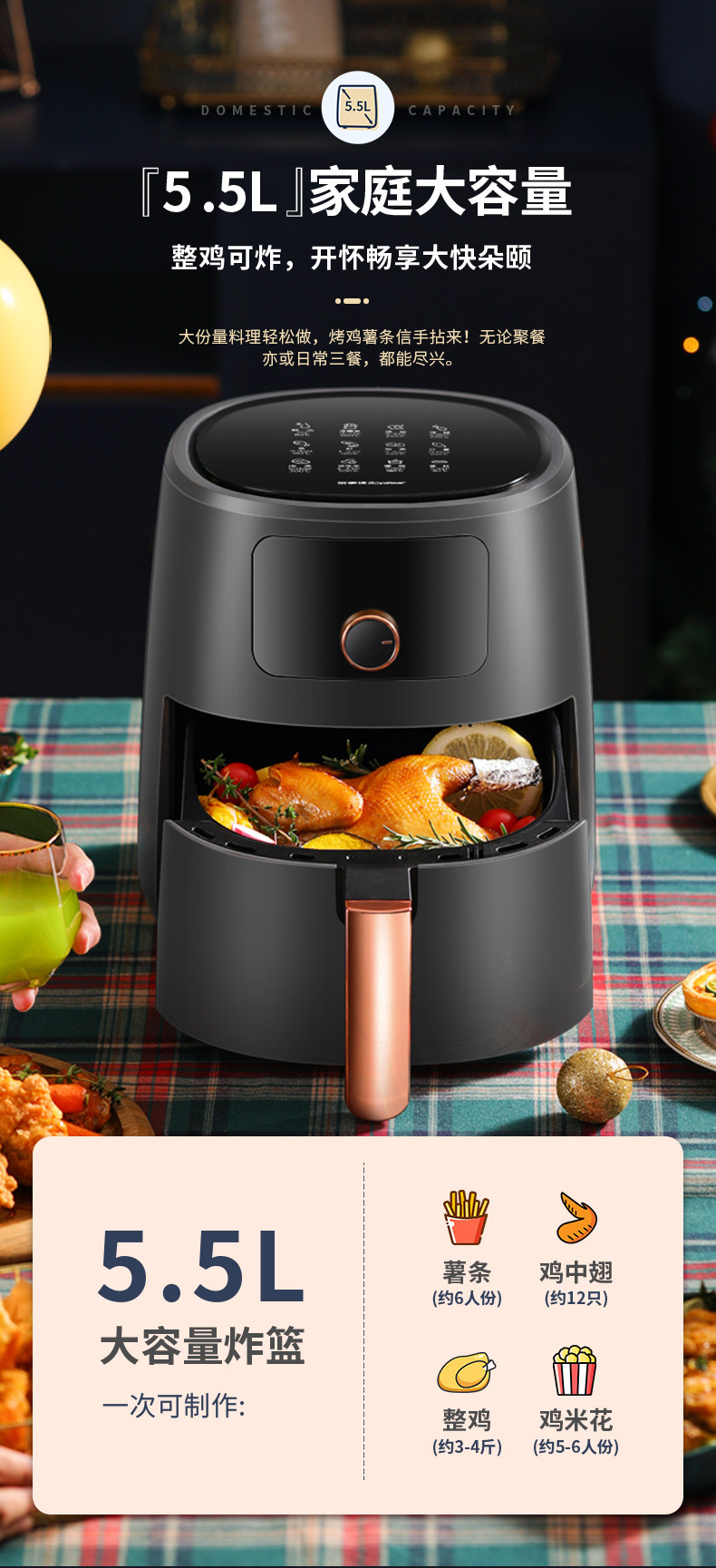 5.5L黑色【旋钮+触控款】