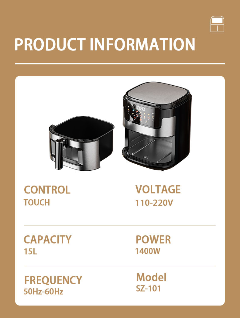 2025年新款15L可视空气炸锅触摸彩屏电炸锅无痕涂层