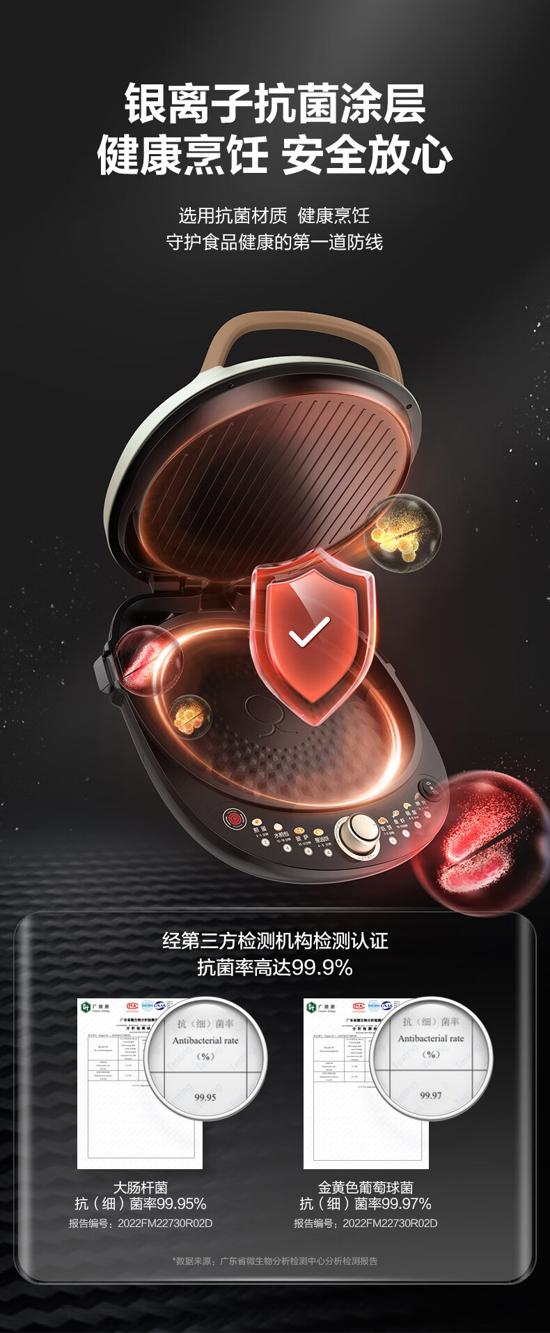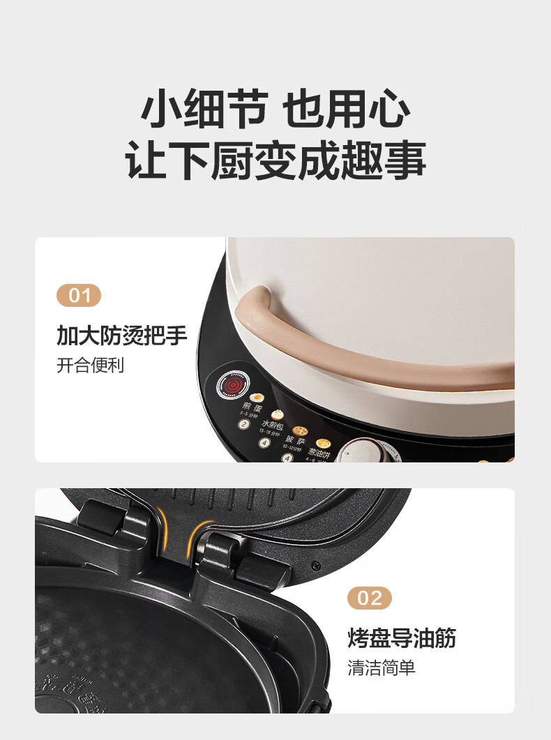 电饼铛双面加热煎烤机烙饼锅早餐机5档烤肉薄饼机JD30AQ849