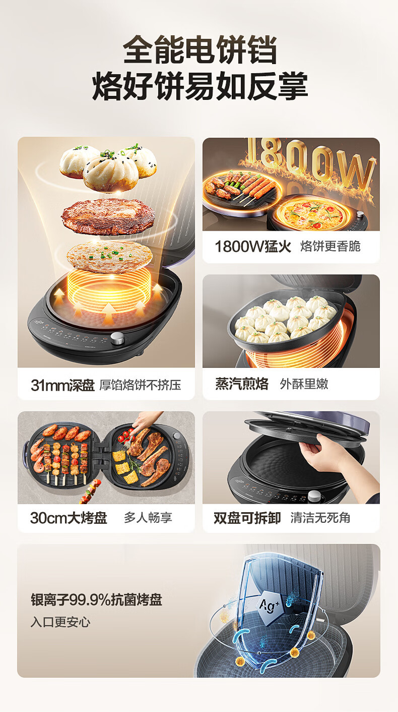 电饼铛可拆洗家用双面加热烙饼煎饼早餐机煎烤机JJ30RQ802