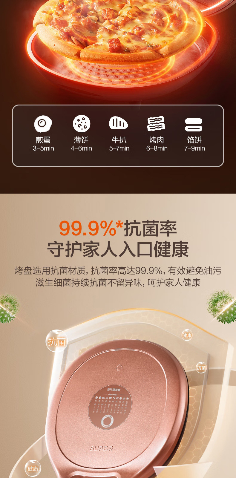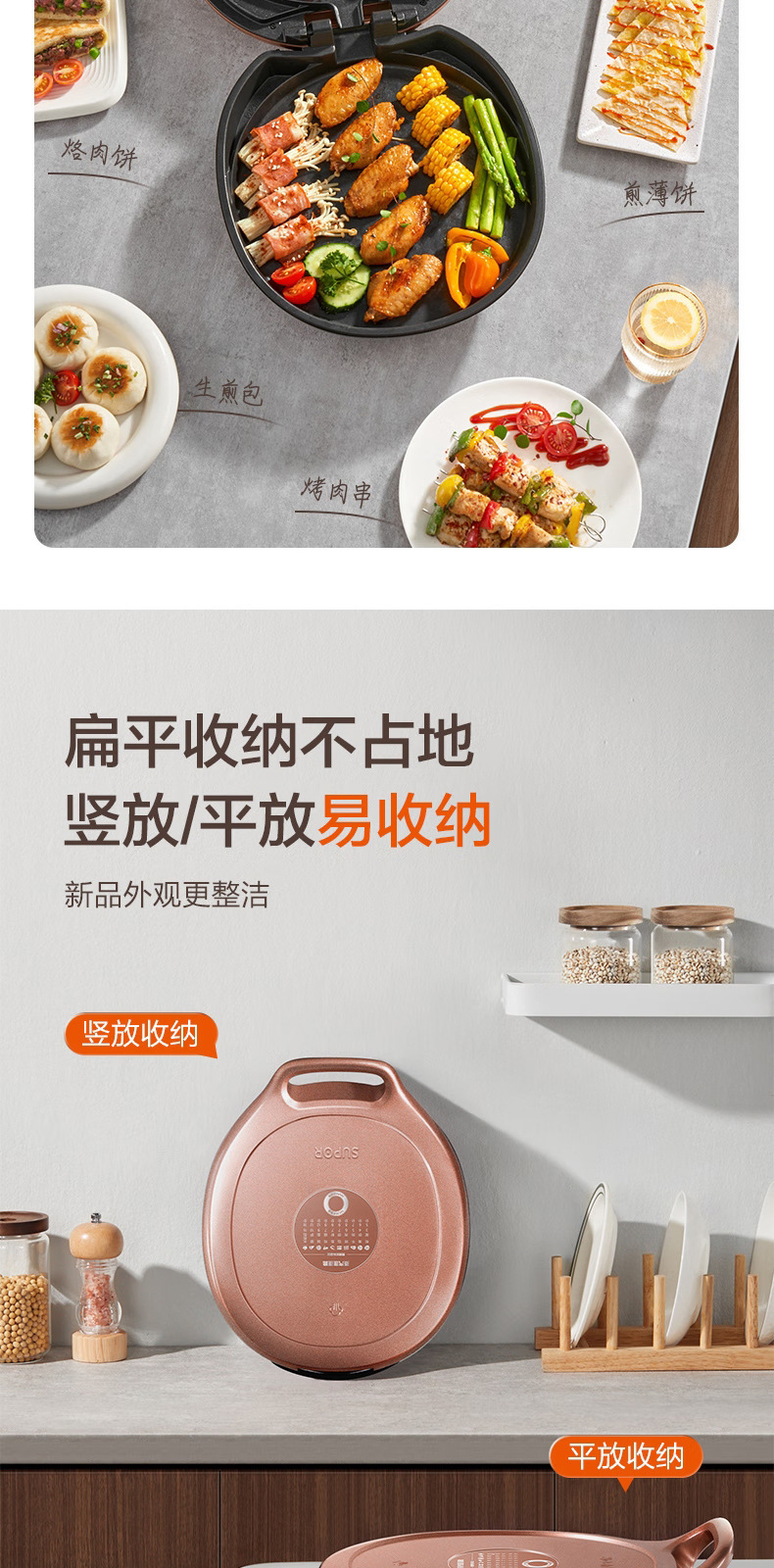 电饼铛30CM大烤盘双面独立加热薄饼煎烤机烙饼机JJ30AQ848