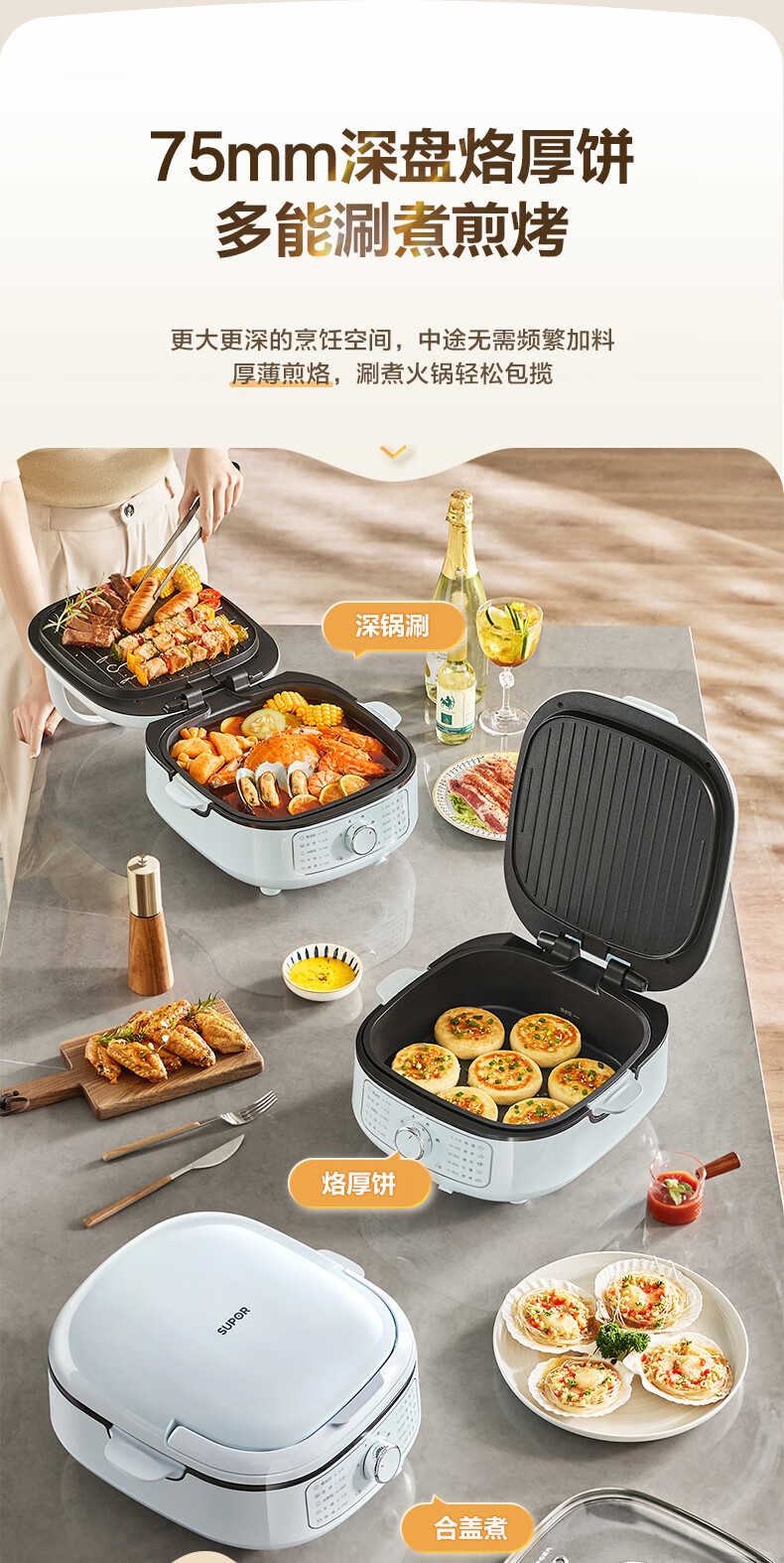 不锈钢电蒸锅家用多功能三层大容量蒸箱火锅蒸炖煮一体蒸汽锅