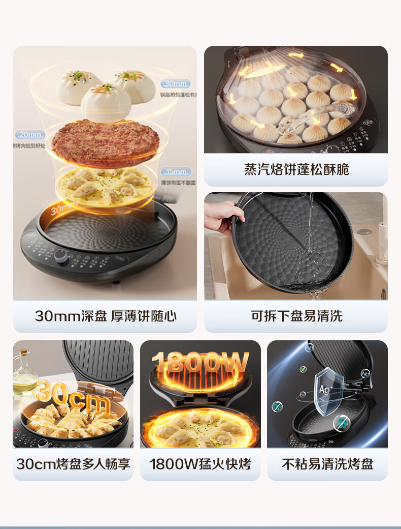 电饼铛双面加热煎饼锅烙饼锅早餐机三明治机JJ30RQ800