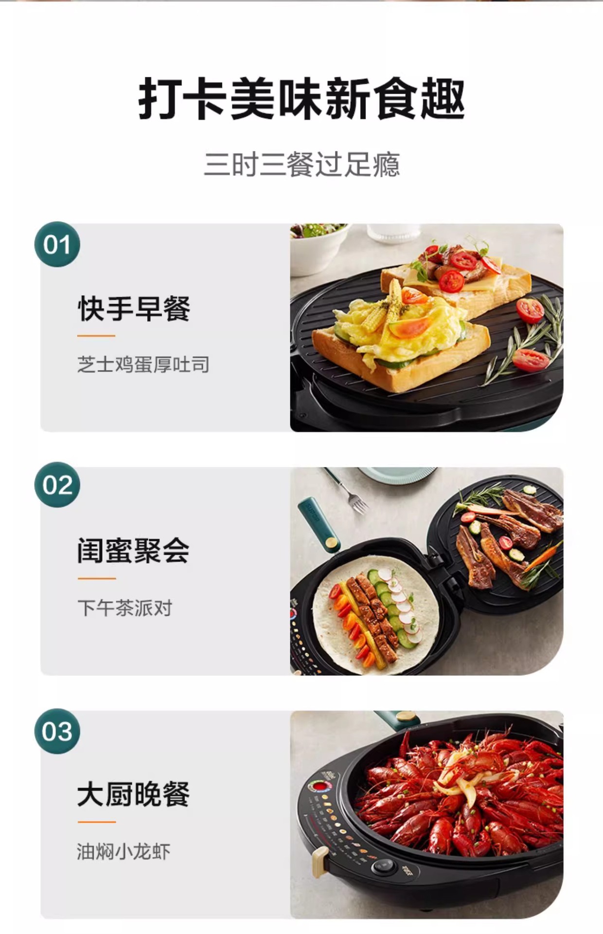 电饼铛家用加大加深不粘烤盘双面加热可拆洗煎