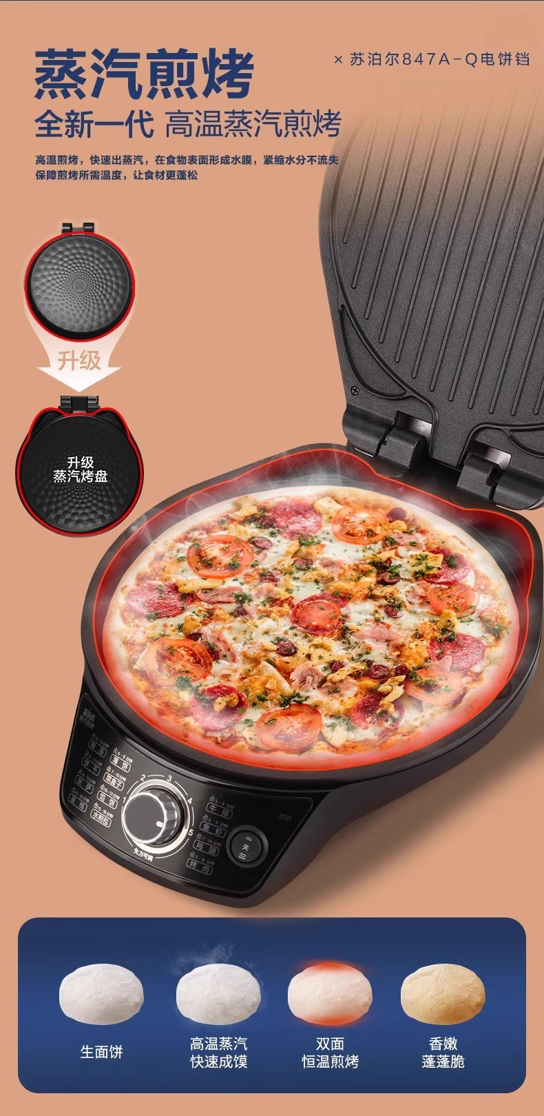 蒸汽电饼铛档家用双面加热烙饼锅煎饼机称新款