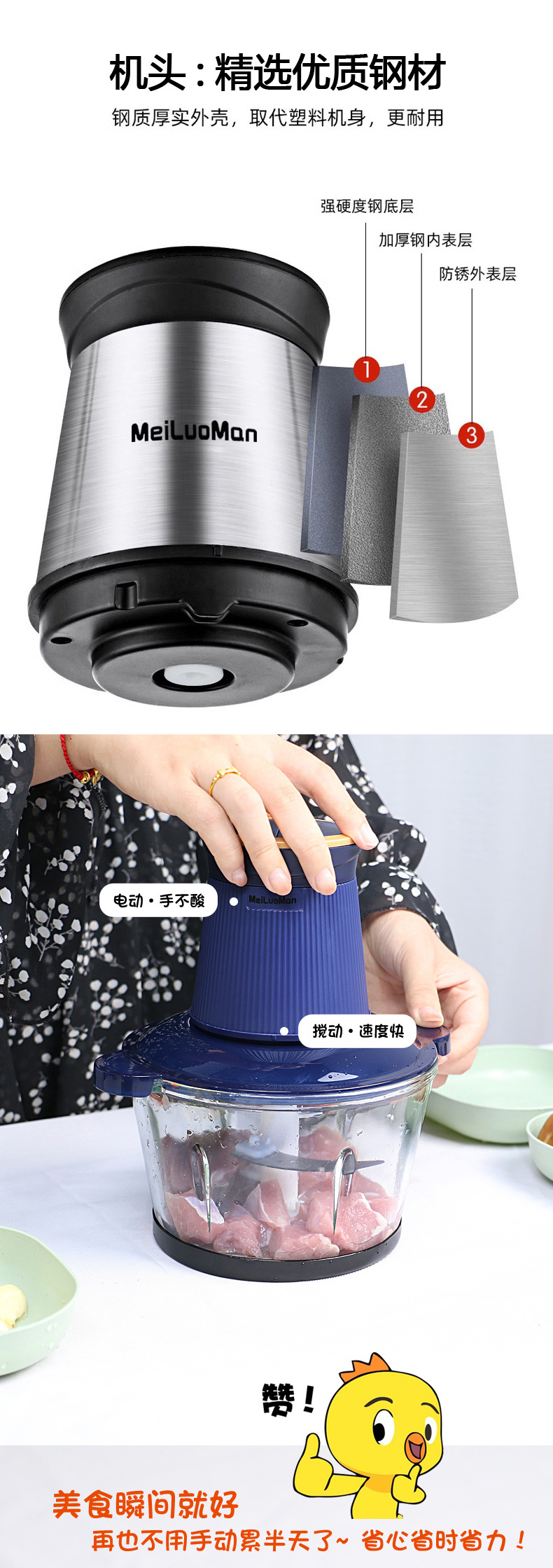 新款家用绞肉机不锈钢全自动多功能搅拌机馅碎肉小型佐料理机