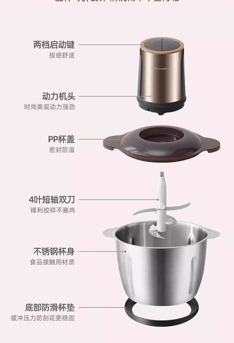 奥克斯/AUX绞肉机家用1.8L辅食搅拌机电动蒜泥器碎肉多功能料理机