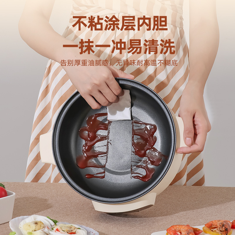 大瓦数电煮锅不粘锅小型家用宿舍电火锅煎炸炒涮焖迷你小电锅