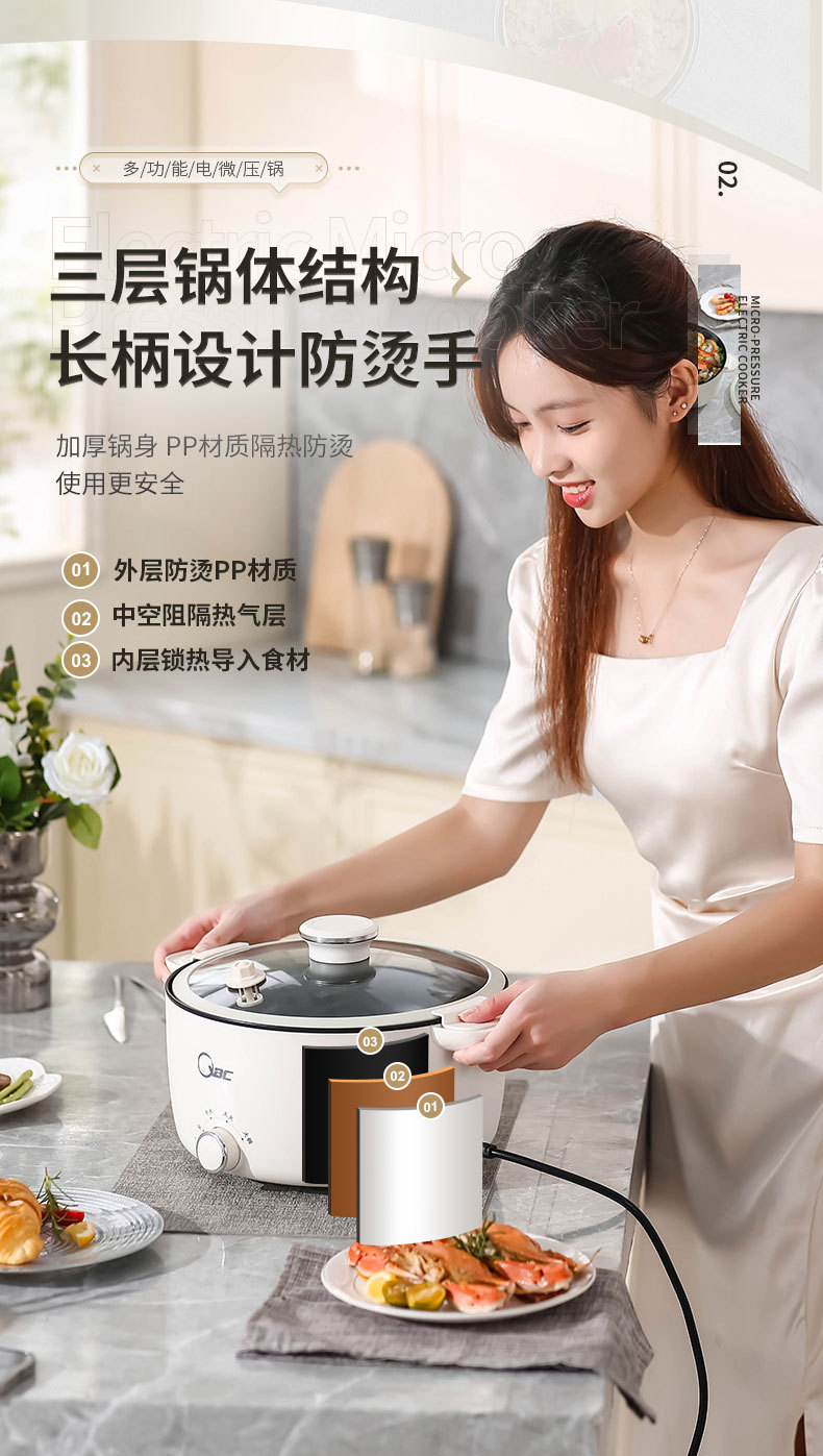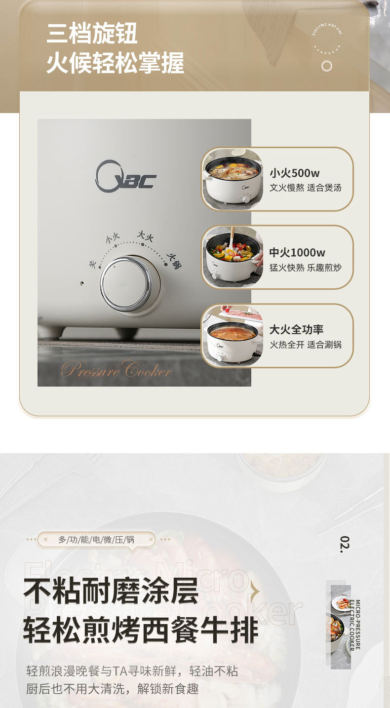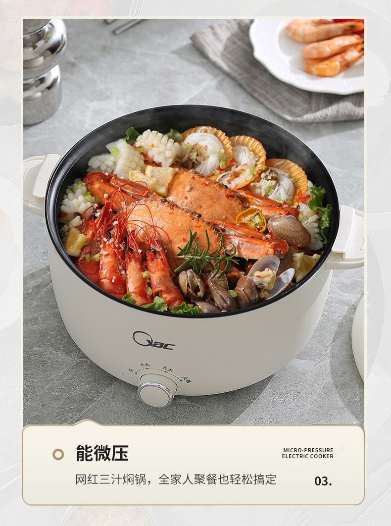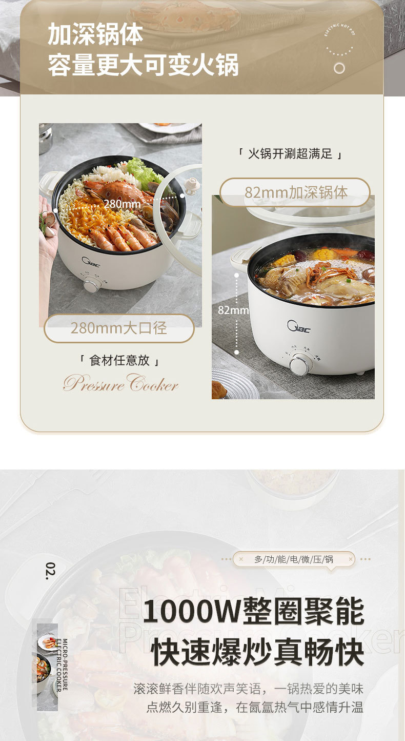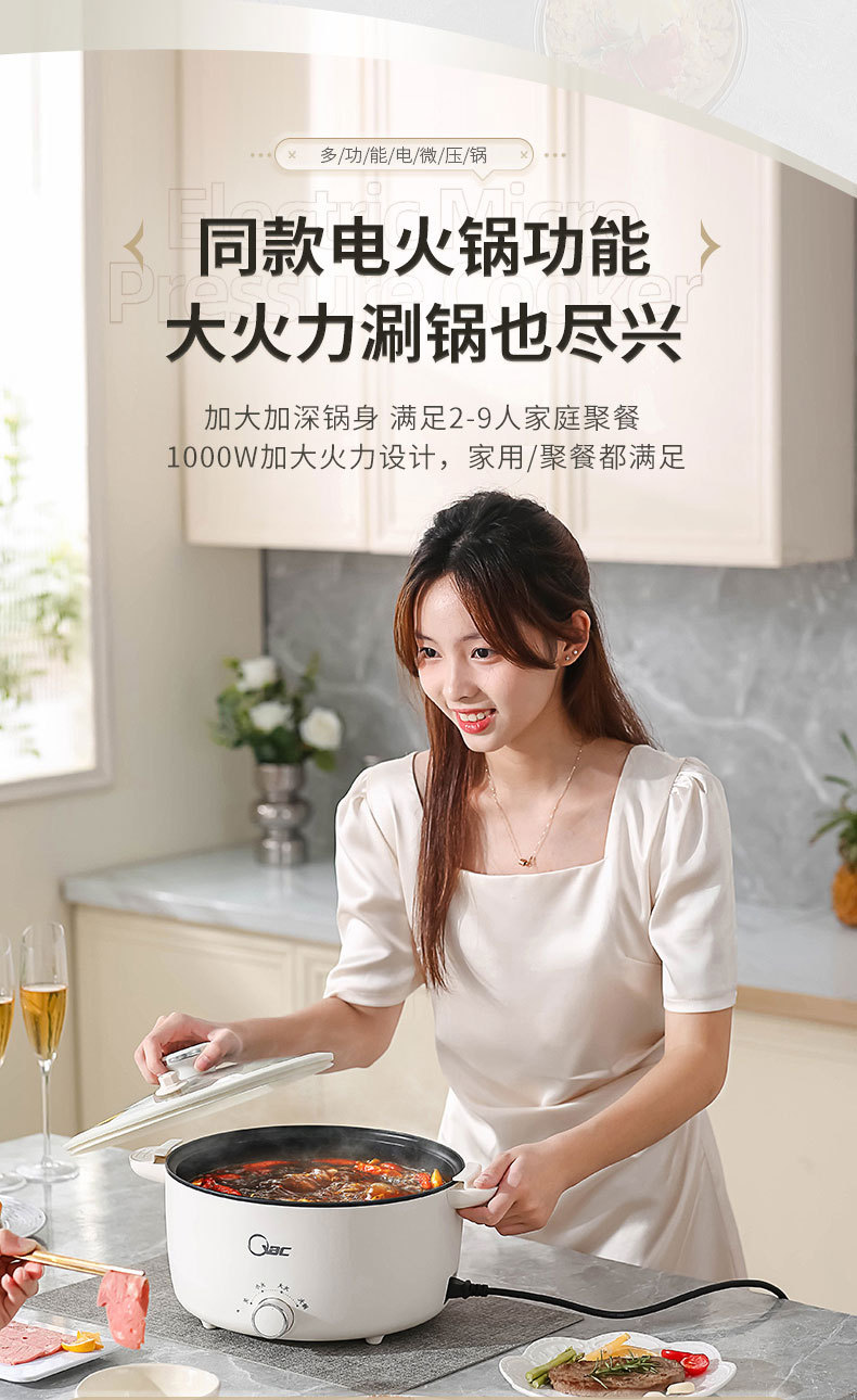 多功能家用大容量煎炸炒一体料理锅速热大瓦数电火锅蒸锅