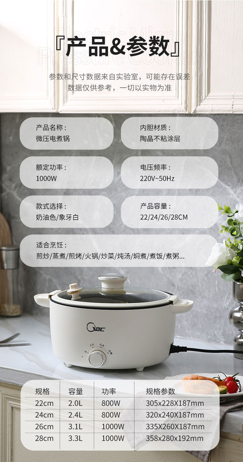 微压多功能家用大容量煎炸炒一体料理锅速热大瓦数电火锅蒸锅