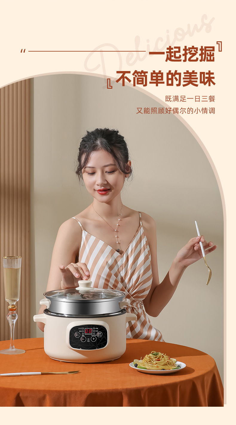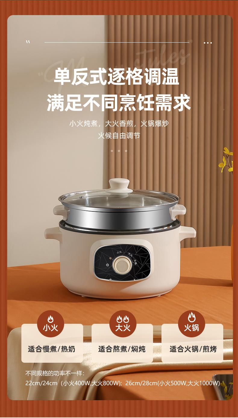 不粘内胆电煮锅小型宿舍煎炸炒涮焖迷你多功能电热锅一体锅