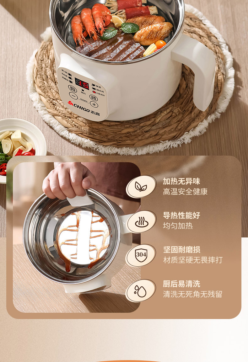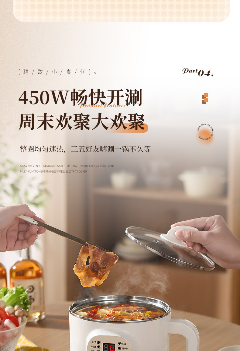 304宿舍小锅450瓦可煎炒小功率电煮锅电热锅多功能煮锅