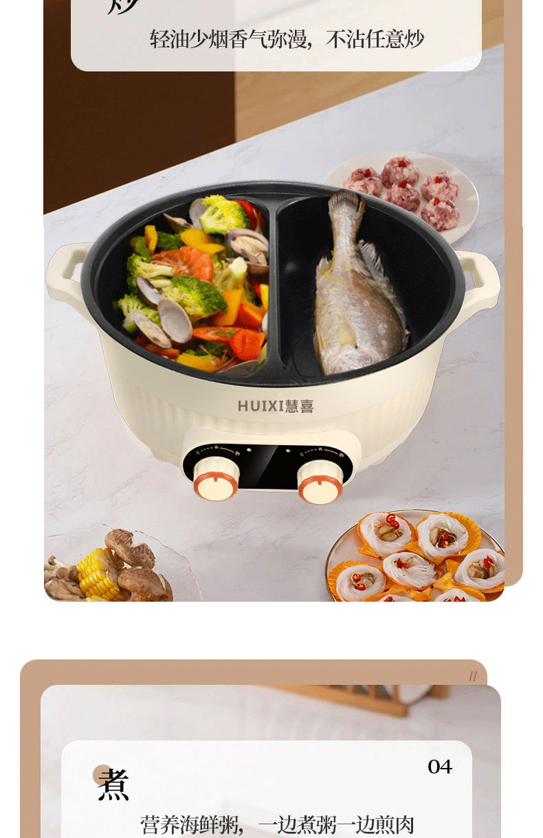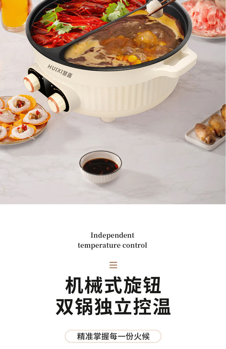 鸳鸯电火锅大容量三格火锅电煮锅家用电火锅3-4人多功能一体