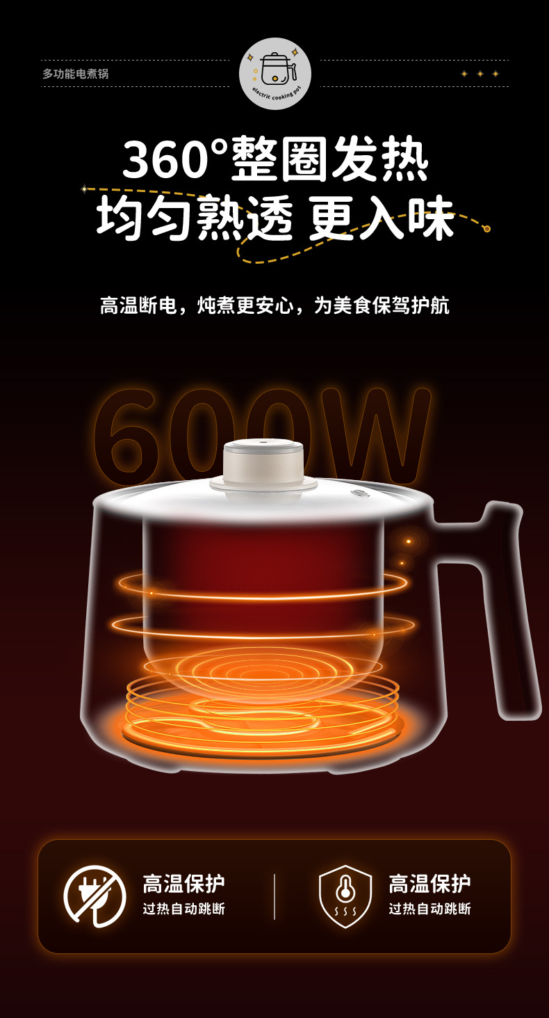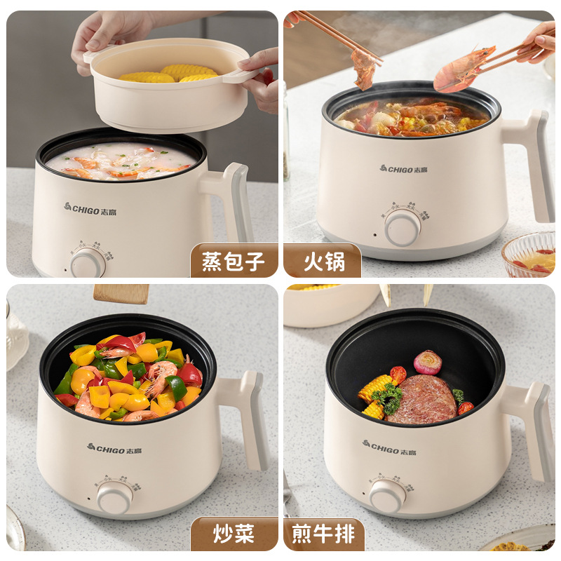 电煮锅家用宿舍迷你小电锅蒸煮不粘电火锅多功能煮面锅