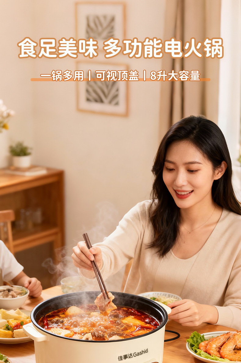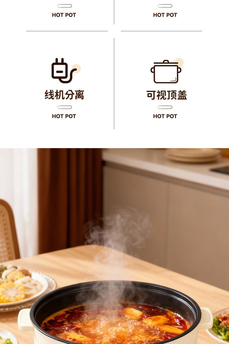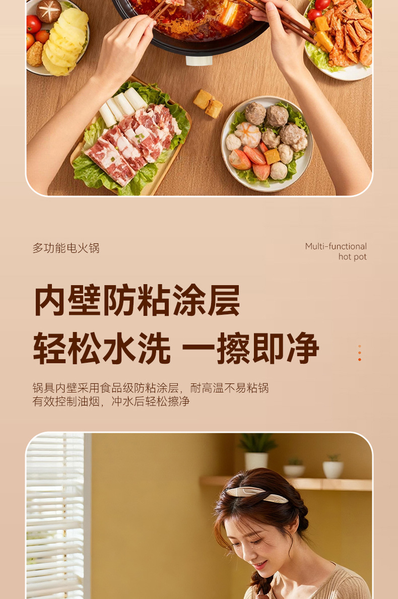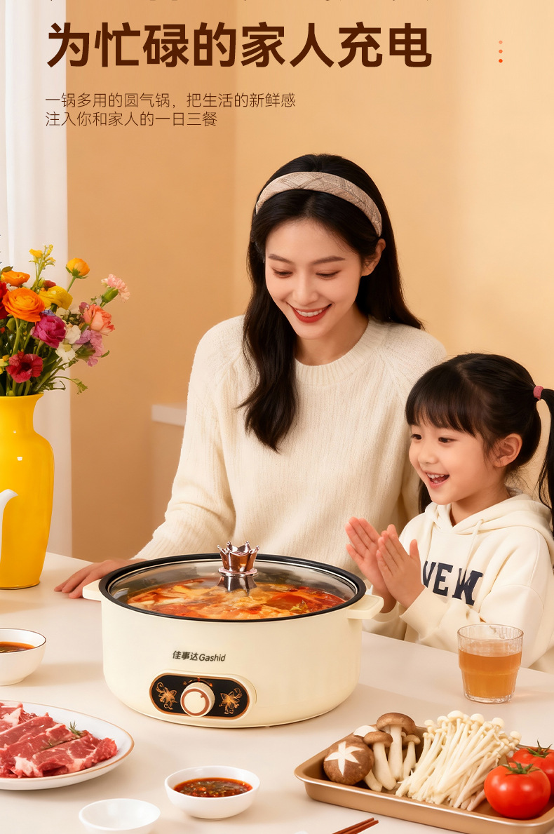 家用大容量多功能电煮锅煎炒一体不粘锅电炒锅料理锅电热锅