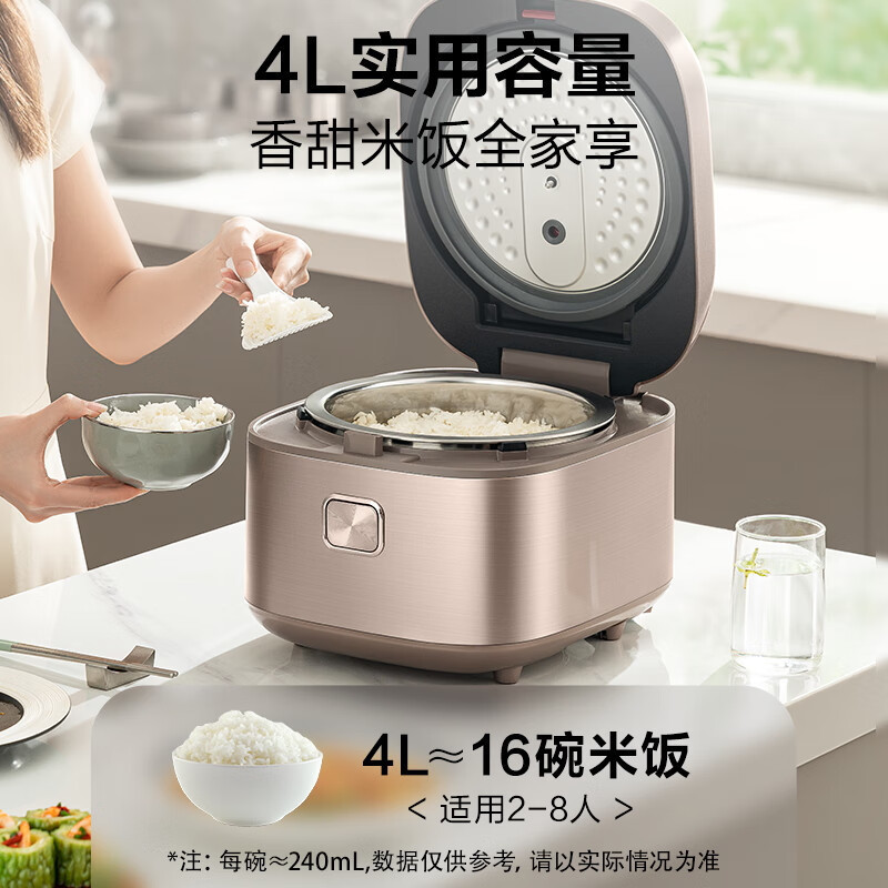 电饭煲智能0涂层球釜无涂层4L家庭大容量不锈钢内胆烹饪机