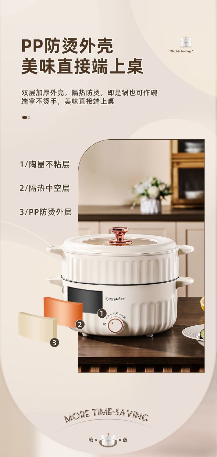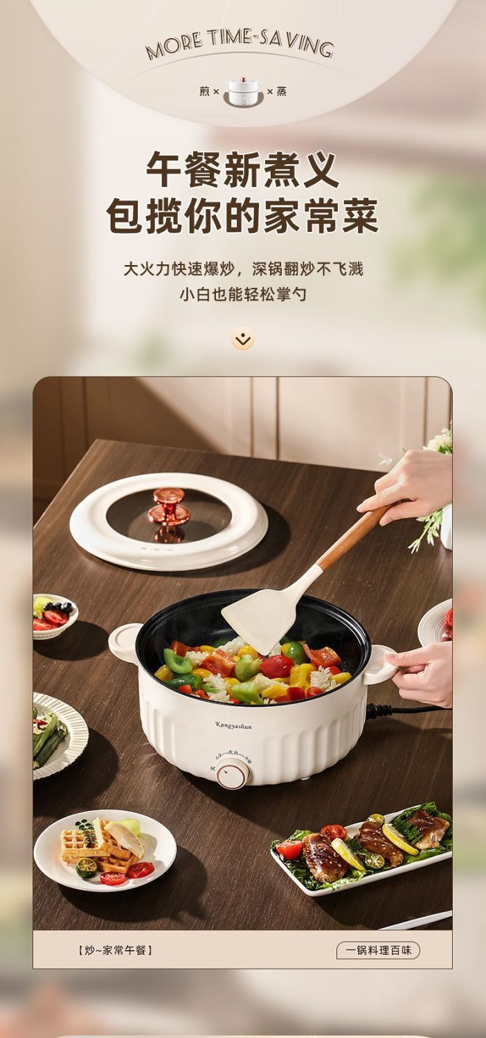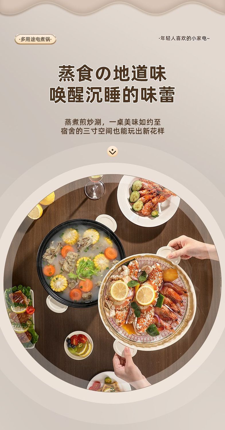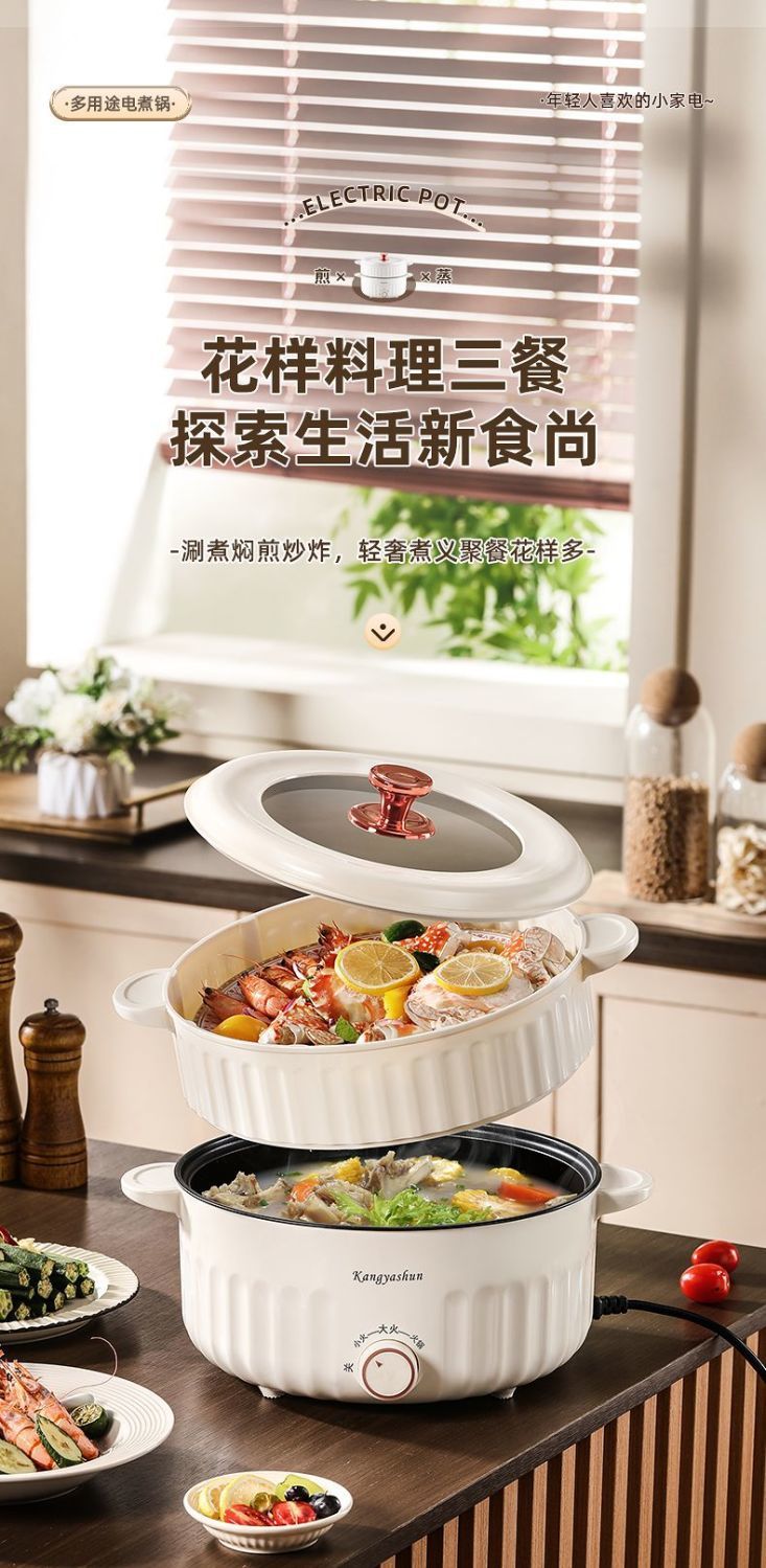 电煮多功能宿舍电锅家用煮面一体火锅蒸煮电热电炒锅