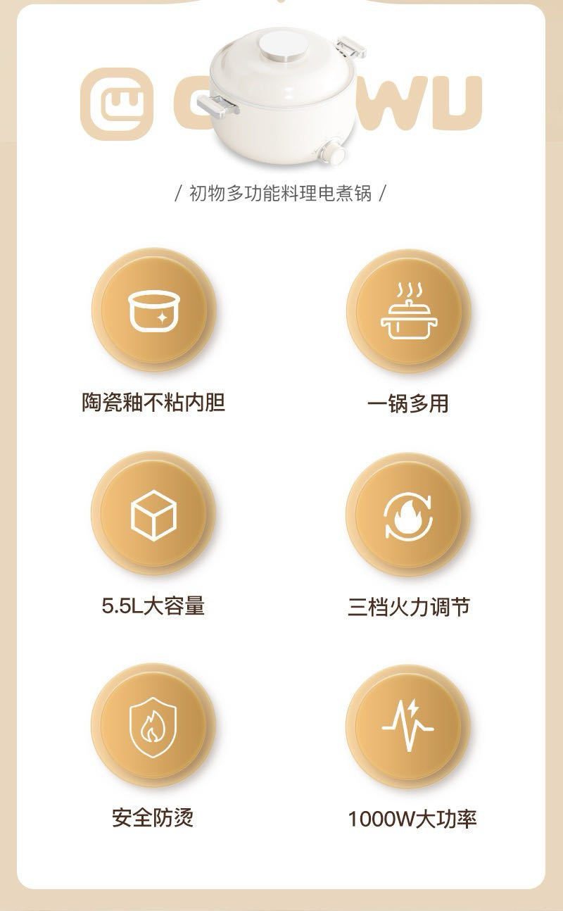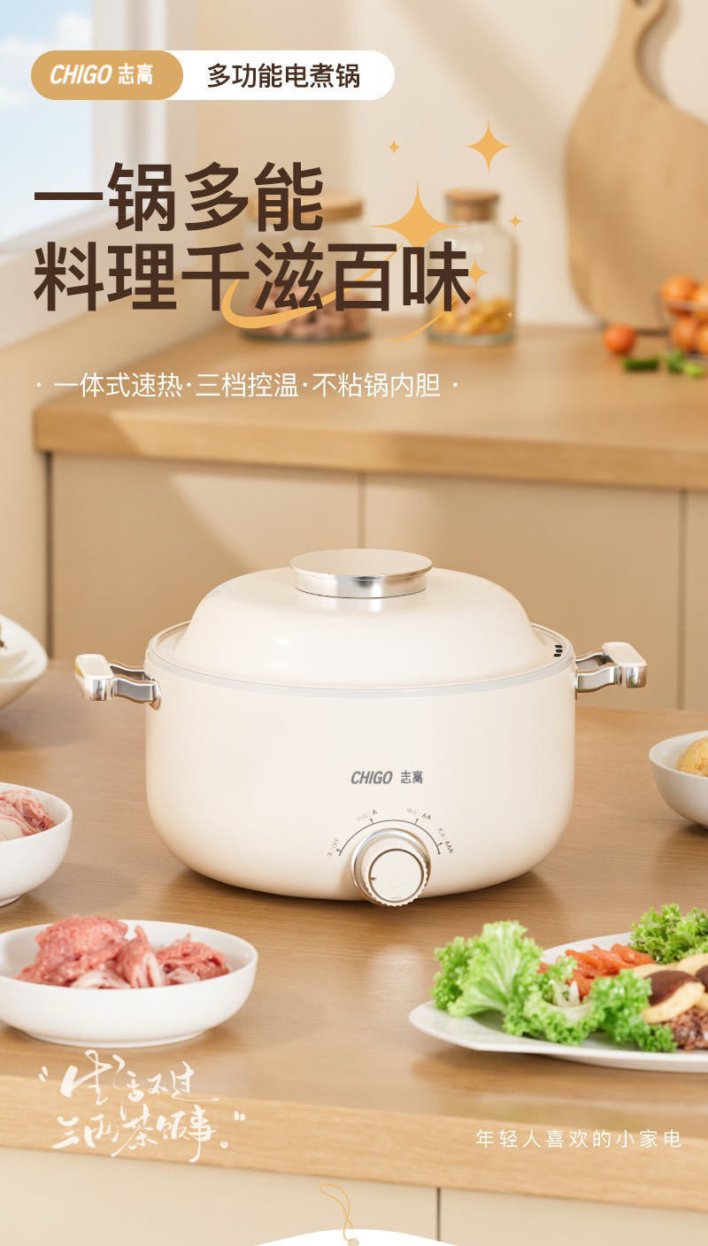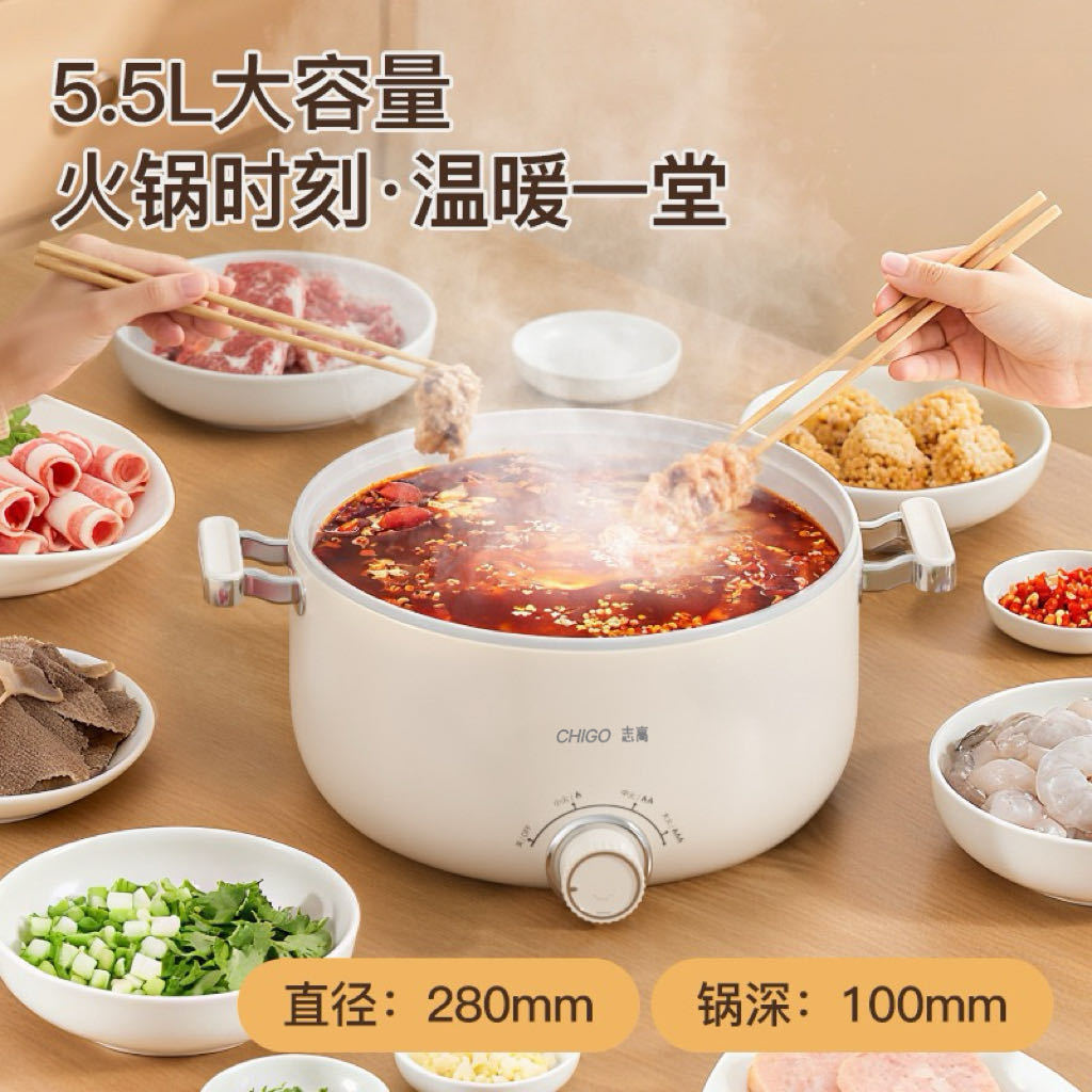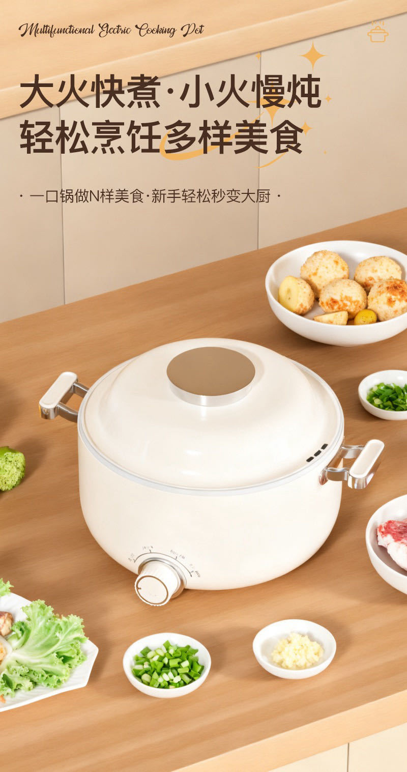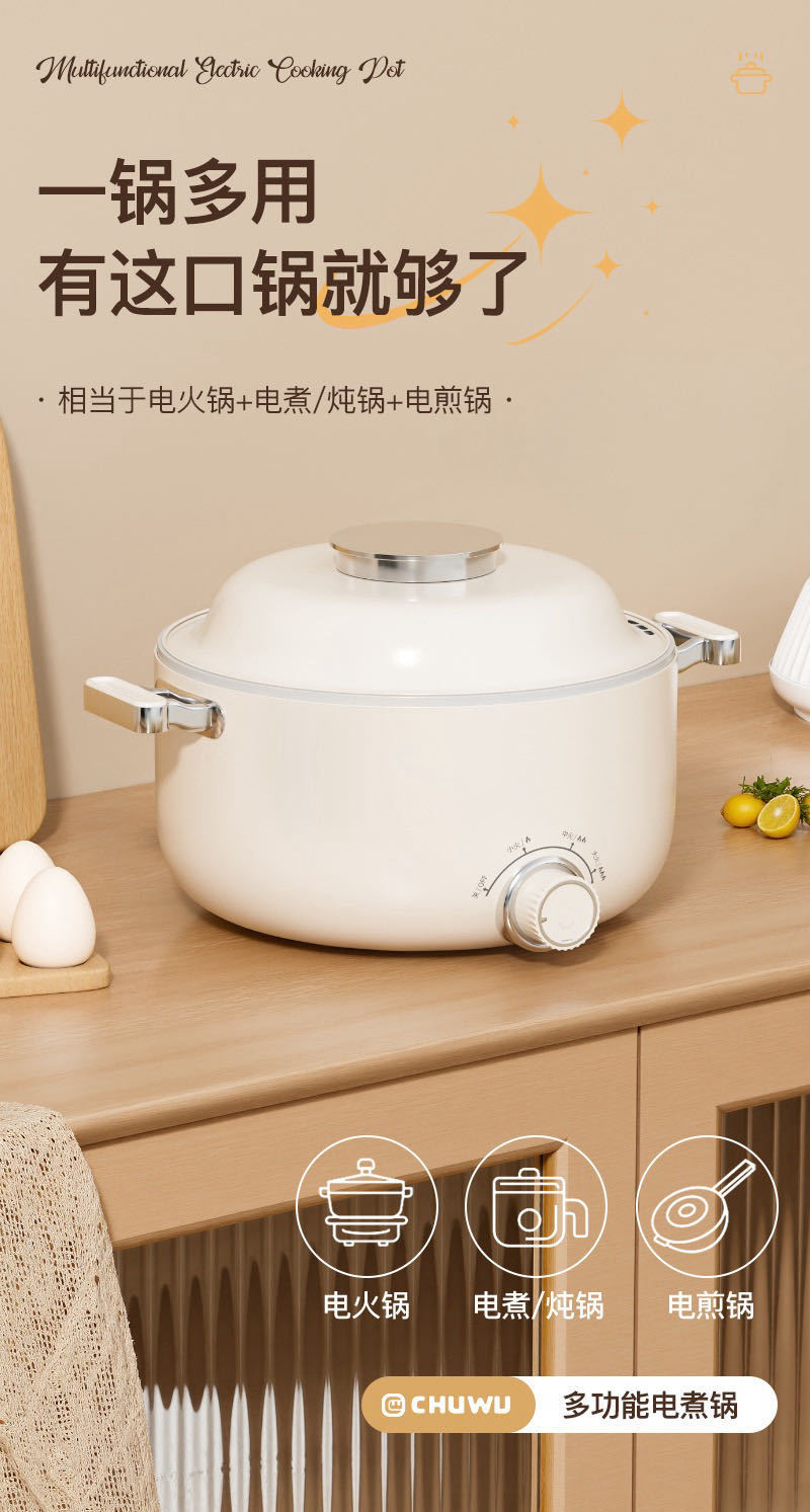 多功能电火锅宿舍小电锅一体式不粘内胆电煮锅高颜值锅