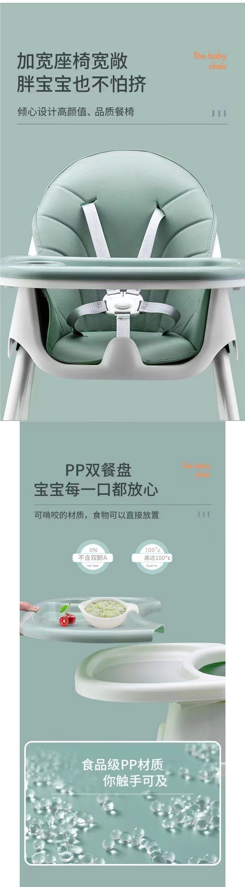 牛油果绿-基础矮餐椅【折叠+双层】