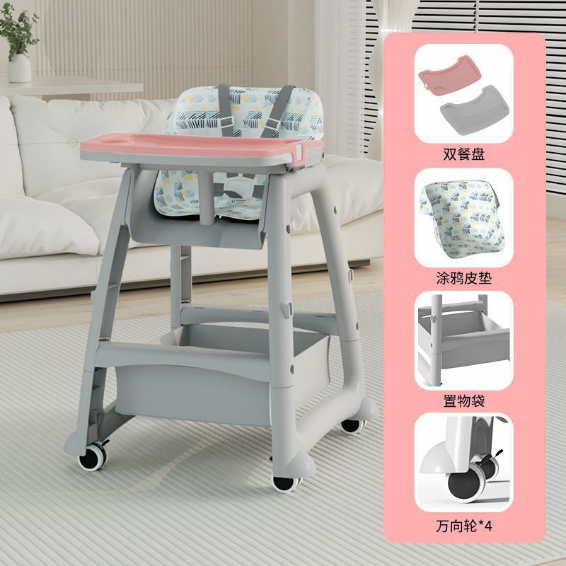 - 粉色-【加厚加高款】滑轮+皮垫+双层餐盘+置物袋♢♜