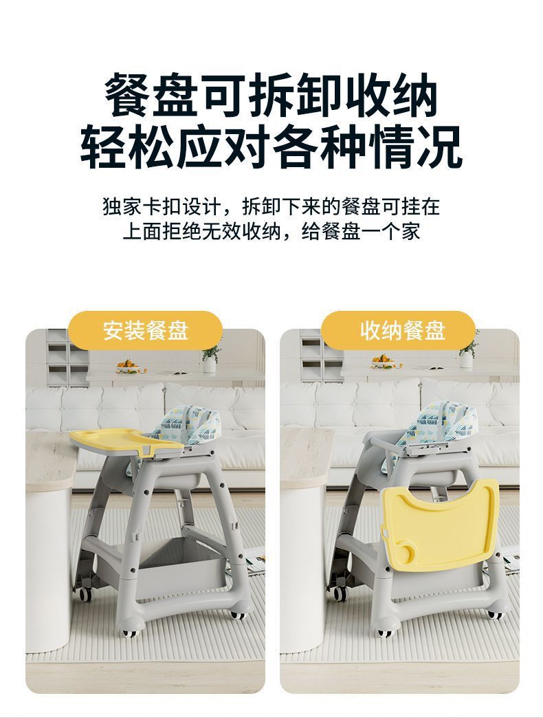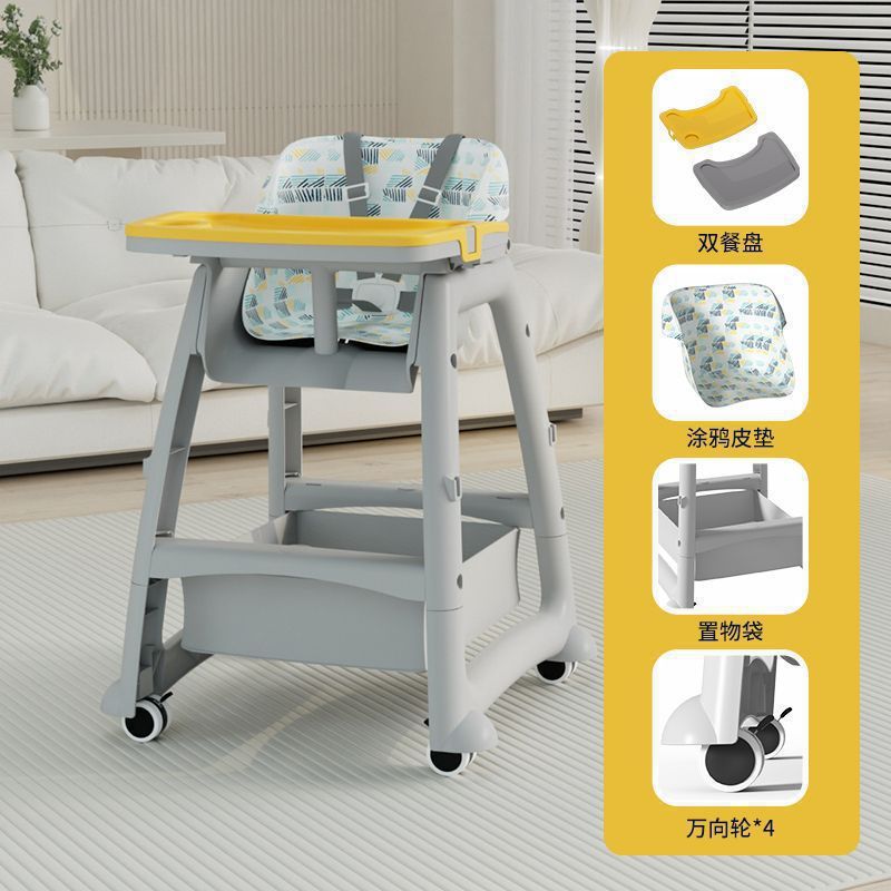 - 黄色-【加厚加高款】滑轮+皮垫+双层餐盘+置物袋♢♜