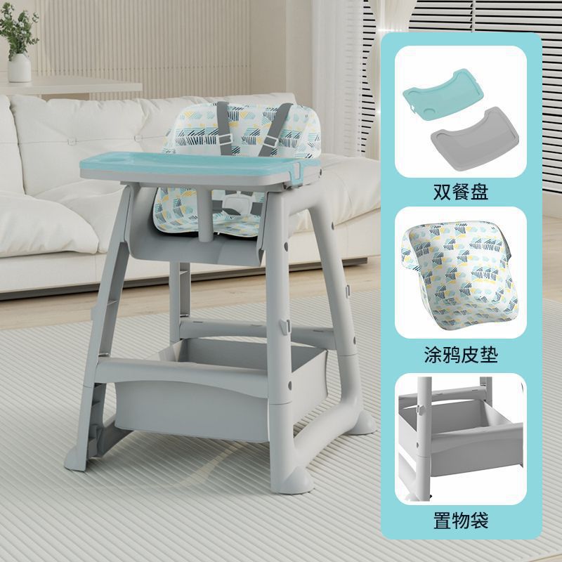 - 绿色-【加厚加高款】+涂鸦皮垫+双层餐盘+置物袋♢♜
