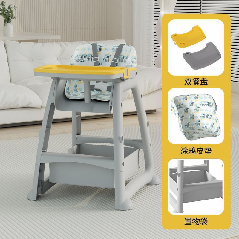 - 黄色-【加厚加高款】+涂鸦皮垫+双层餐盘+置物袋♢♜