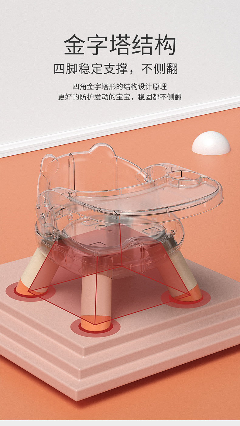 - 维尔粉靠背叫叫椅+双层餐椅+安全带+高矮可调(PVC垫有声款)
