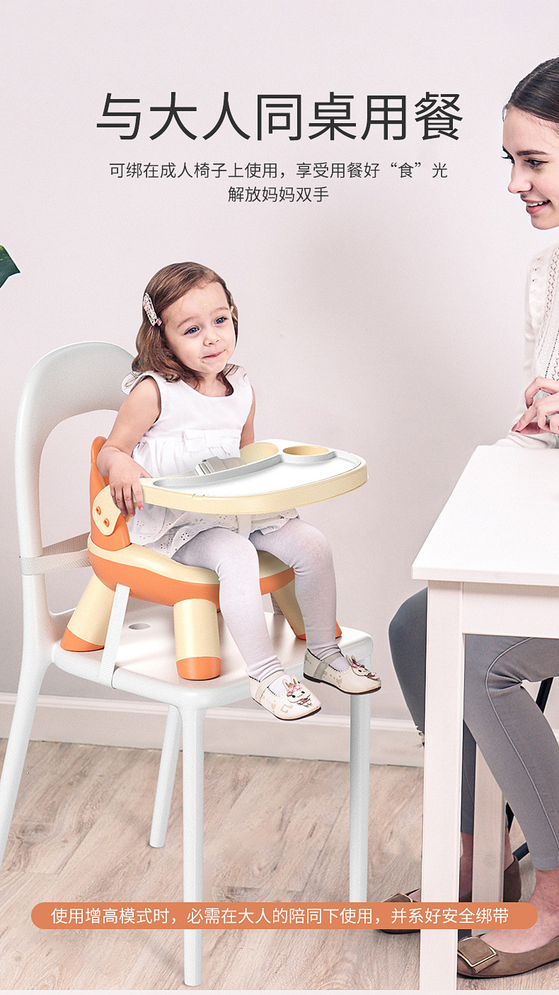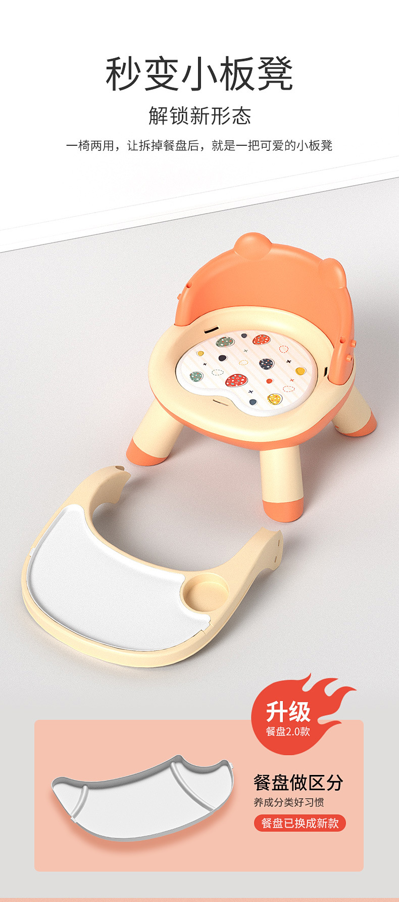 - 洛克橙靠背叫叫椅+双层餐椅+安全带+高矮可调(PVC垫有声款)