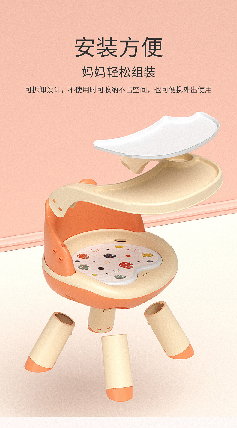- 洛克橙靠背叫叫椅+双层餐椅(PVC垫有声款)