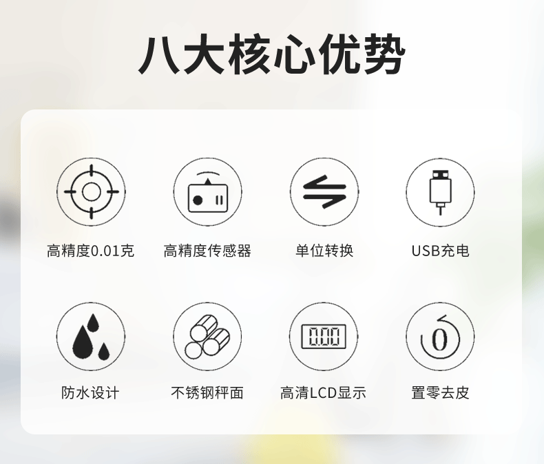 - 白色【充电款5kg/0.1g】精准称重/持久续航/高清背光