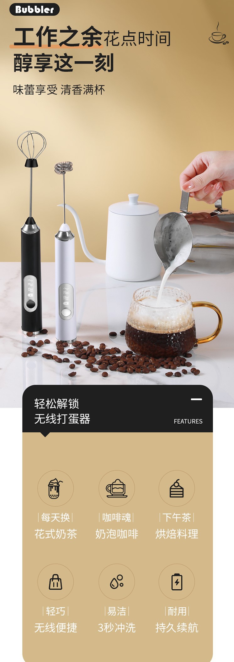 - 奶泡头+打蛋头(默认白色其他颜色联系备注)